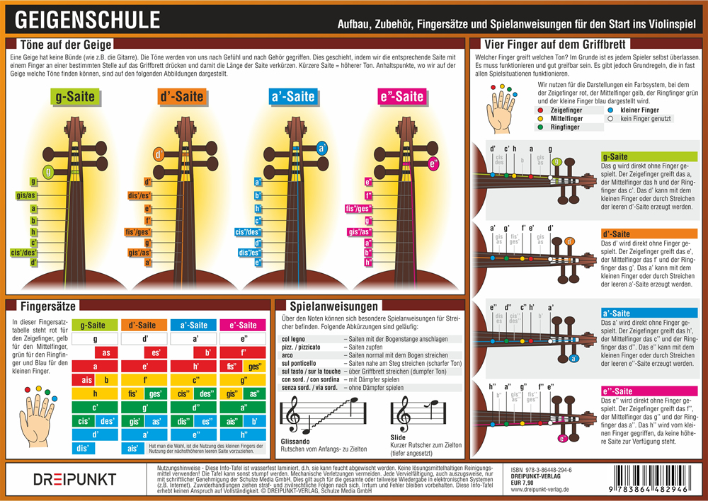Lernen Sie das Geigenspiel einfach und schnell mit dieser Info-Tafel.