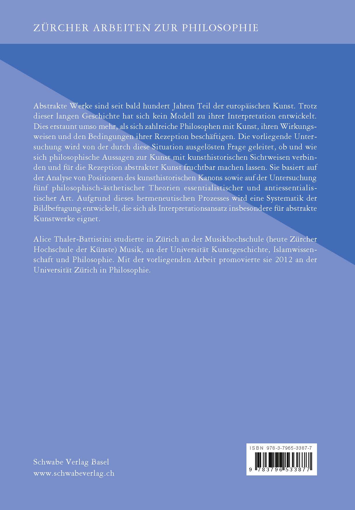 Nichtgegenständliche Werke sind seit bald hundert Jahren Teil der europäischen Kunst. Trotz dieser langen Geschichte hat sich kein Modell zu ihrer Interpretation entwickelt. Dies erstaunt umso mehr, als sich zahlreiche Philosophen mit Kunst, ihren Wirkungsweisen und den Bedingungen ihrer Rezeption beschäftigen.Die vorliegende Untersuchung wird von der durch diese Situation ausgelösten Frage geleitet, ob und wie sich philosophische Aussagen zur Kunst mit kunsthistorischen Sichtweisen verbinden und für die Rezeption nichtgegenständlicher Kunst fruchtbar machen lassen. Sie basiert auf der Analyse von Positionen des kunsthistorischen Kanons sowie auf der Untersuchung fünf philosophisch-ästhetischer Theorien essentialistischer und antiessentialistischer Art. Aufgrund dieses hermeneutischen Prozesses wird eine Systematik der Bildbefragung entwickelt, die sich als Interpretationsansatz insbesondere für nicht gegenstandsbezogenere Werke eignet.Zahlreiche Abbildungen, die Bestandteil des Diskurses sind, begleiten die interdisziplinäre Arbeit, die sich in vier Kapitel gliedert. Sie beginnt mit der Untersuchung der sich auch im Kunstkontext ergänzenden als auch konkurrenzierenden Elemente Zeigen und Sagen. Im zweiten Kapitel werden Elemente der ikonischen Logik untersucht, die das Sein des Bildes als sein Scheinen definieren. Dabei werden vier Typen ikonisch absenter Charakteristiken – Leerstellen – erstmals systematisiert. Das dritte Kapitel analysiert signifikante Texte zur Ästhetik von G. W. F. Hegel, M. Weitz, N. Goodman, M. Heidegger und H.-G. Gadamer. Aus ihnen werden Leitgedanken deduziert, die im vierten Kapitel die Grundlage von drei systematischen Bildbefragungen bilden. Die kunstwissenschaftliche Relevanz dieses philosophischen Ansatzes wird durch die damit generierten Werkinterpretationen belegt.