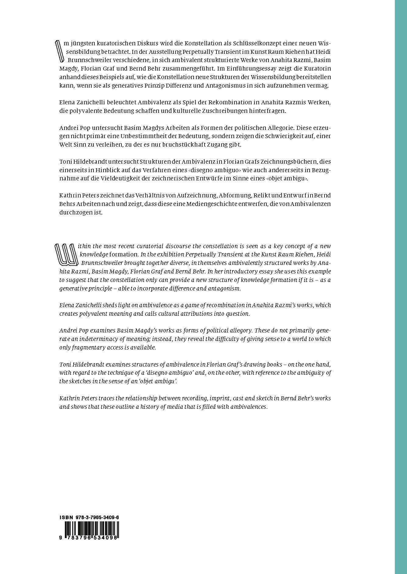 | Schlagworte | Ambivalenz • Ausstellungskataloge; Kunst • Behr, Bernd • Graf, Florian • Kunst • Kunst Raum Riehen • Lexika • Magdy, Basim • Razmi, Anahita |