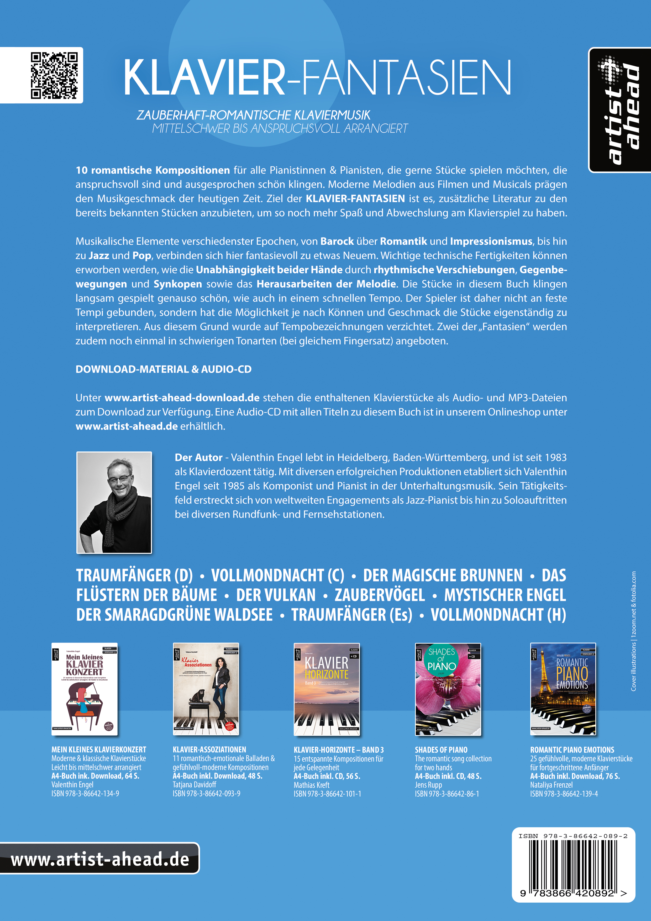 Unter artist-ahead-download.de stehen die enthaltenen Klavierstücke als Audio- und MP3-Dateien zum Download zur Verfügung. Eine Audio-CD mit allen Titeln zu diesem Buch ist in unserem Onlineshop unter artist-ahead.de erhältlich.