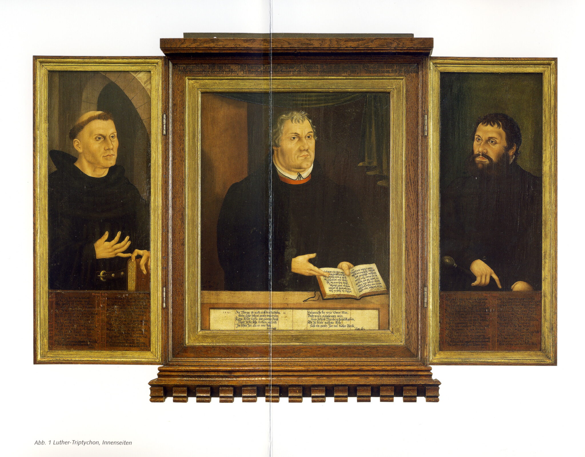 außen deutlich darzustellen, wie der Cranachaltar in der Weimarer Stadtkirche St. Peter und Paul eindringlich vor Augen führt. In diesen konfessionspolitischen Kontext gehört ebenfalls das Weimarer Luthertriptychon.
