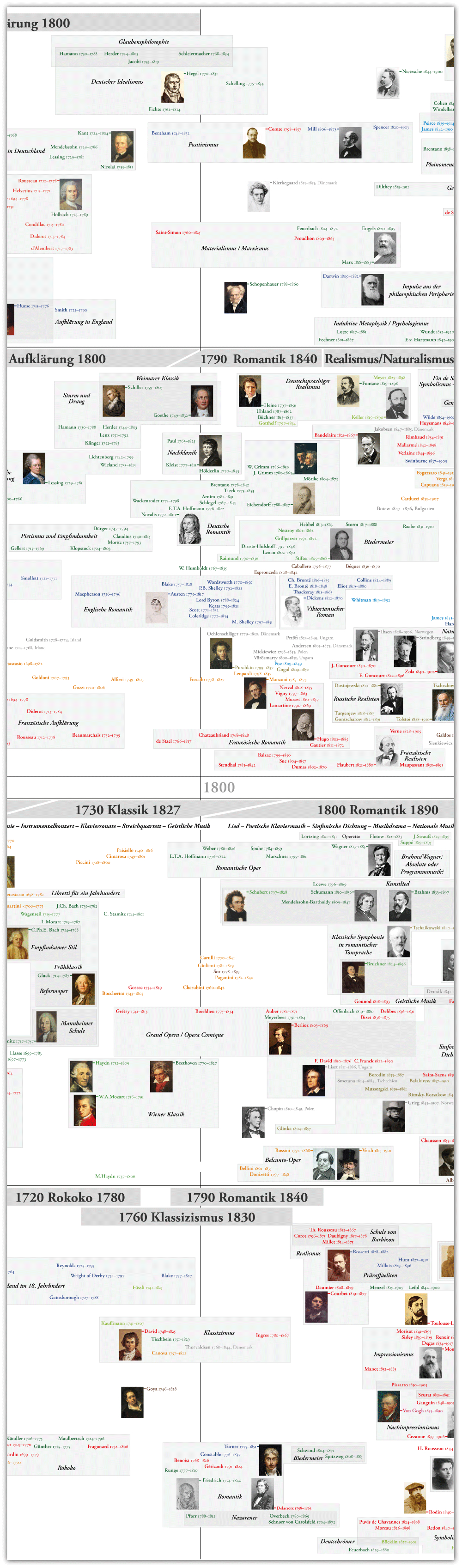 | Schlagworte | abendländisch • Antike • Autor • Autoren • Autorentafel • Barock • Bildhauer • Epoche • Europa • Gattung • Geistesgeschichte • Geistige Strömung • Geschichte • Historie • historisch • Klassik • klassisch • Komponist • Kultur • Kulturbereiche • Kulturgeschichte • Kunst • Kunstgeschichte • Literatur • Literaturgeschichte • Maler • Malerei • Mittelalter • Musik • Musikgeschichte • Neuzeit • Philosoph • Philosophie • Philosophiegeschichte • Plakat • Plastik • Renaissance • Romantik • Schaubild • Schöne Künste • Schriftsteller • Schule • Skulptur • Soziologe • Stil • Strömung • Synopse • Übersicht • Urheber • Zeitstrahl |