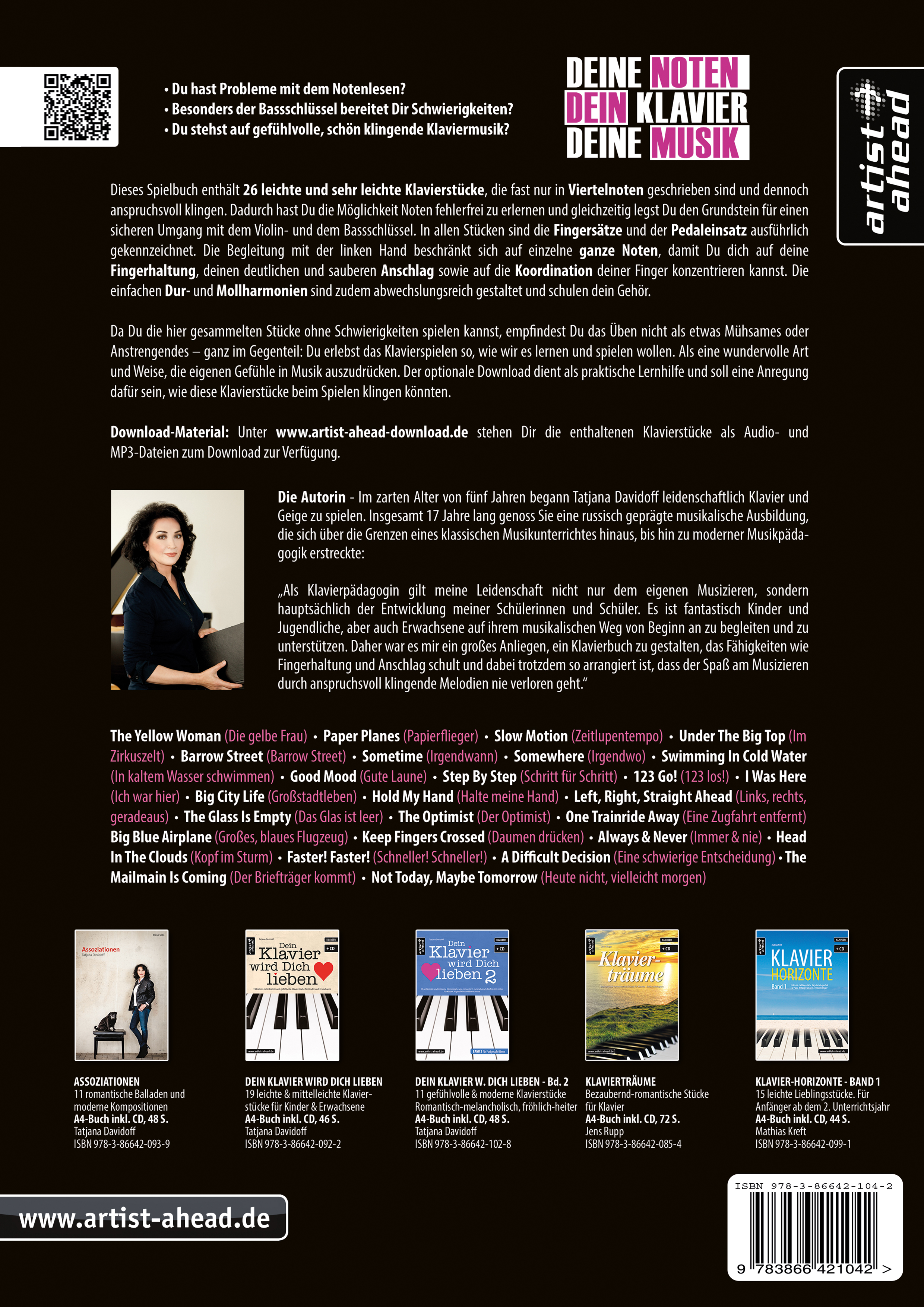 Unter artist-ahead-download.de stehen Dir die enthaltenen Klavierstücke als Audio- und MP3-Dateien zum Download zur Verfügung. Eine Audio-CD mit allen Titeln zu diesem Buch ist in unserem Onlineshop unter artist-ahead.de erhältlich.