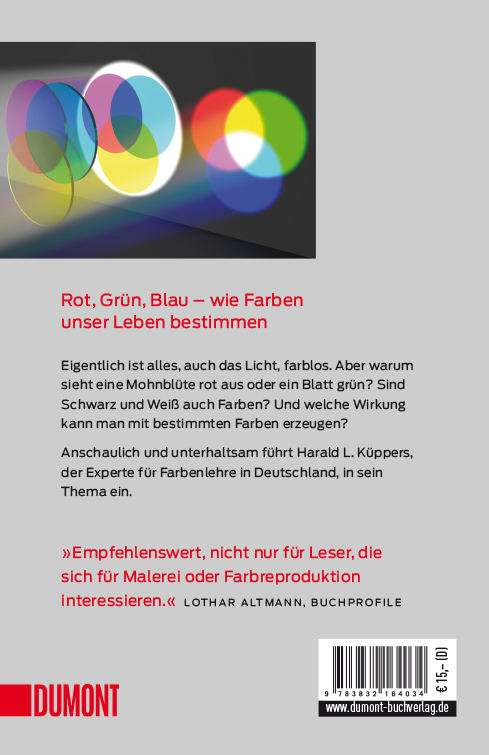 Eigentlich ist alles, auch das Licht, farblos. Aber warum sieht eine Mohnblüte rot aus oder ein Blatt grün? Sind Schwarz und Weiß auch Farben? Und welche Wirkung kann man mit bestimmten Farben erzeugen?Anschaulich und unterhaltsam führt Harald L. Küppers, der Experte für Farbenlehre in Deutschland, in sein Thema ein.