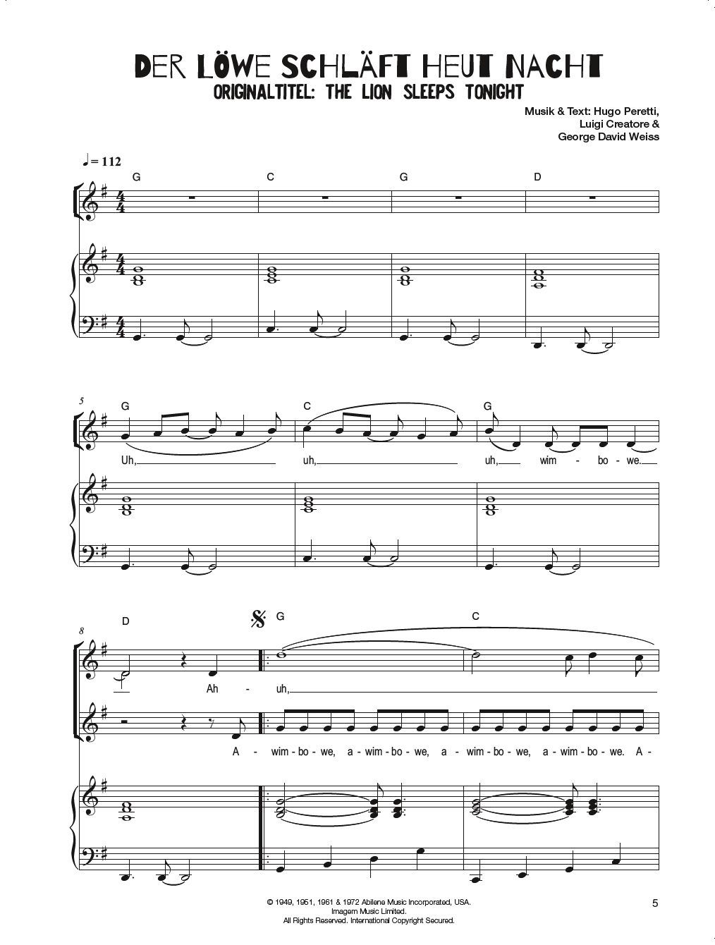 2. Der Löwe schläft heut Nacht (aus dem Film "Der König der Löwen")