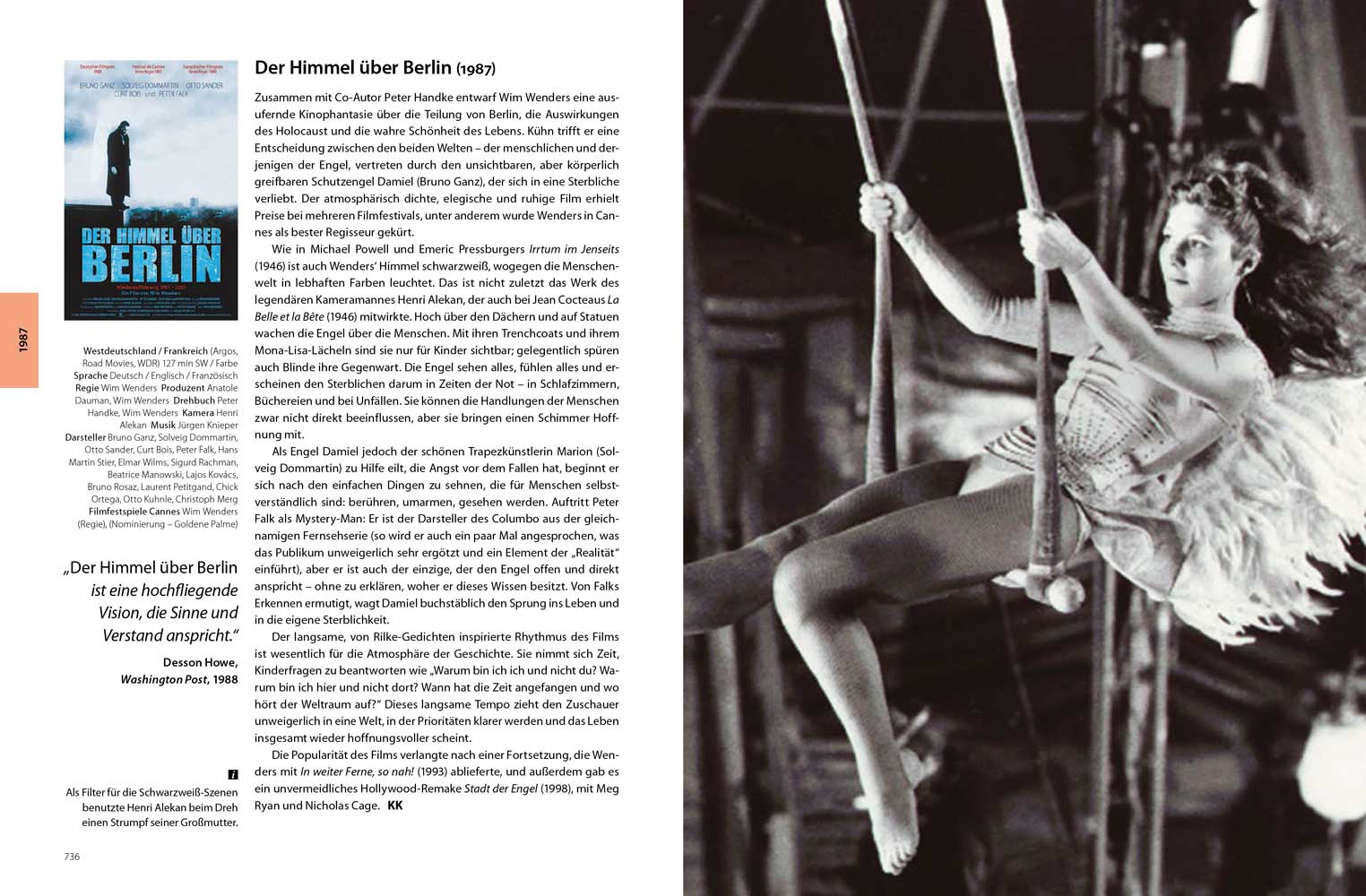 Dieser Band umfasst mehr als ein Jahrhundert herausragender Kinofilme und versammelt die wichtigsten Filme aus aller Welt und aus allen Genres, von Action bis Western, von Trick- oder Animationsfilm über Komödie und Dokumentarfilm bis Musical, von Thriller über Film Noir bis Kurz-, Liebes- und Science-Fiction-Film.