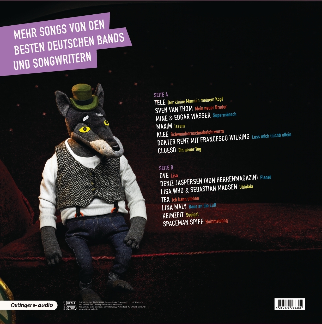 Produzent: Francesco Wilking, Chris von Rautenkranz Solist (Gesang): Spaceman Spiff, Tex, Francesco Wilking, Ove, Sven van Thom, Deniz Jaspersen, Keimzeit, Lisa Who, Sebastian Madsen, KLEE, Clueso, MINE, Edgar Wasser, TELE, Lina Maly, MAXIM, Dokter Renz Cover Design: Julia Wenzel, Henning Heide |