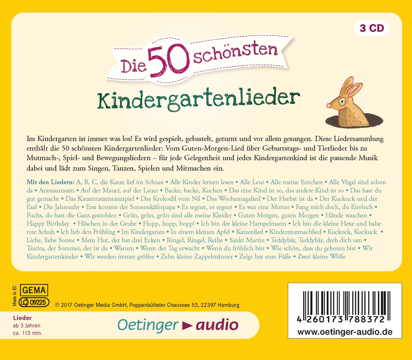Die 50 schönsten Kindergartenlieder, 3 Audio-CD