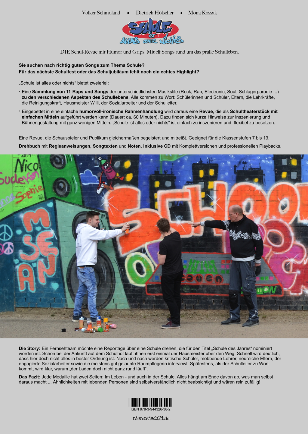 Schule ist alles oder nichts.Tolle Songs rund um das pralle Schulleben inkl. Rahmenhandlung für Aufführungen.DIE Schul-Revue mit Humor und Grips.Media-Paket (Buch mit Audio-CD).11 Songs für Schüler, Eltern, den Schulleiter, den Sozialarbeiter, die Raumpflegerin, für Willi, den Hausmeister ...Von Rap bis Pop, von Rock bis Soul, von Folk bis Schlager-Parodie ...Dazu eine Rahmenhandlung, so dass daraus bei Bedarf eine humorvolle Schul-Revue wird - der Hit für das nächste Sommerfest oder das Schuljubiläum!Die Story:Ein Fernsehteam möchte eine Reportage über eine Schule drehen, die für den Titel "Schule des Jahres" nominiert worden ist. Bei der Ankunft auf dem Schulhof läuft ihnen erst einmal Hausmeister Willi über den Weg. Schnell wird deutlich, dass hier doch nicht alles in bester Ordnung ist. Nach und nach werden frustrierte Schüler, mobbende Lehrer, neureiche Eltern, der engagierte Sozialarbeiter sowie die meistens gut gelaunte Raumpflegerin interviewt. Spätestens als der Schulleiter zu Wort kommt, wird klar, warum "der Laden doch nicht ganz rund läuft".Das Fazit: Jede Medaille hat zwei Seiten: Im Leben - und auch in der Schule. Alles hängt am Ende davon ab, was man selbst daraus macht ... Ähnlichkeiten mit lebenden Personen sind selbstverständlich nicht beabsichtigt und wären rein zufällig!