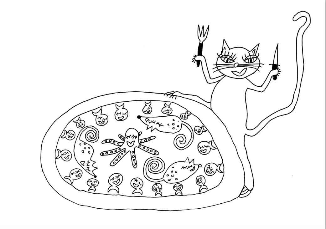 | Zusatzinfo | Zeichnungen zum Ausmalen: Katzen, Mäuse, Engelchen, Papa und Kind beim Fernsehen, ein Äffchen, das Spiegeleier wie Wäsche aufhängt und andere skurrile Wesen. |
