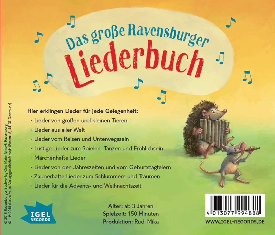 | Schlagworte | Kinderbuch ab 3 • Kinderlieder • Klassische Kinderlieder • Liederbuch |