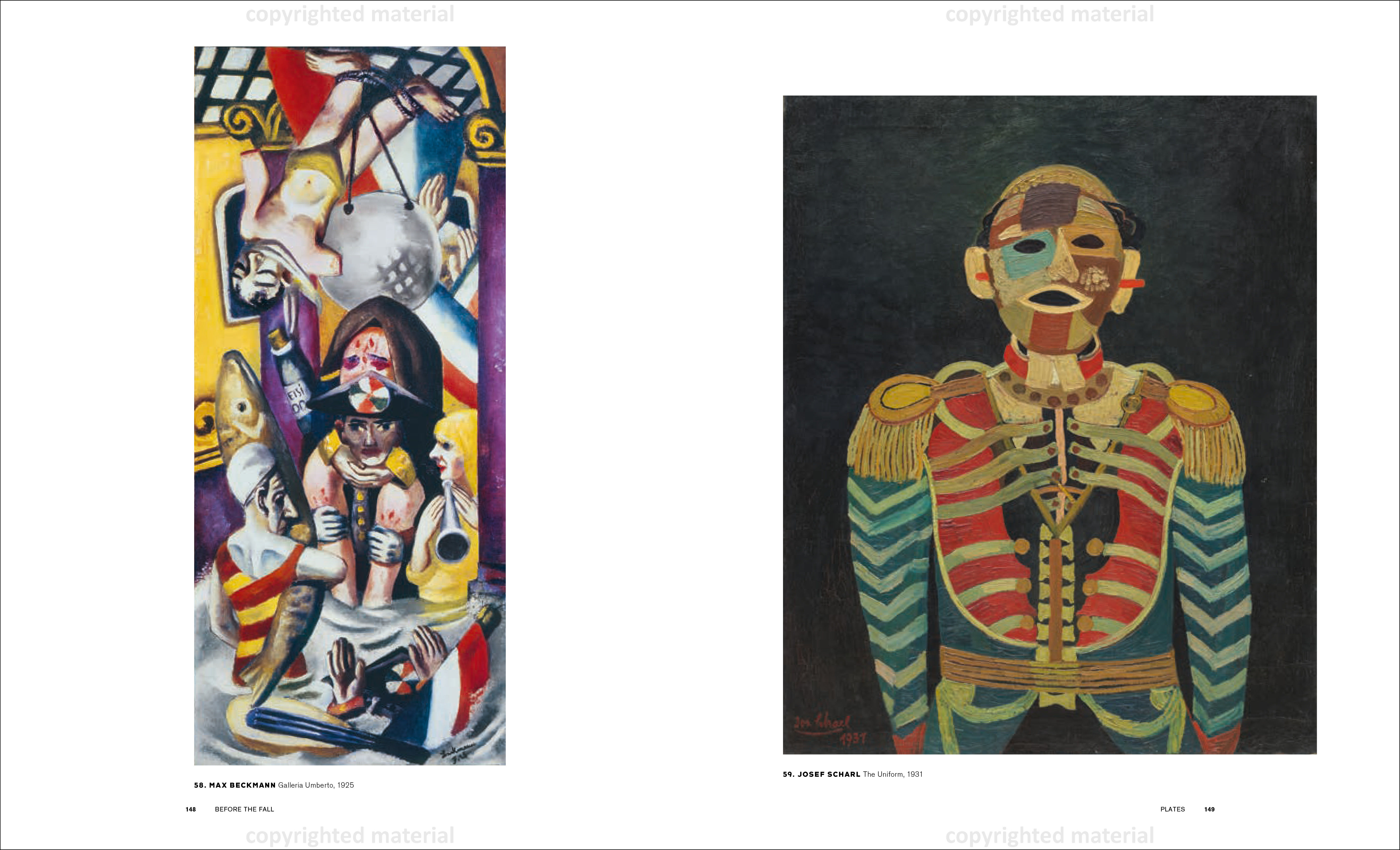 Before the Fall: German and Austrian Art of the 1930s, das fast 150 Gemälde und Papierarbeiten zeigt, zeichnet die vielen Wege nach, die von deutschen und österreichischen Künstlern beschritten wurden und deren künstlerische Entwicklung, die den Beginn des Zweiten Weltkrieges vorausahnen ließen und begleiteten. Zentrale Themen sind die Reaktion der Künstler auf die politischen und gesellschaftlichen Umstände, die Entwicklung eines Stils in Bezug auf die Aneignung verschiedener künstlerischer Ausdrucksweisen, das persönliche Schicksal der Künstler und große politische Ereignisse der Zeit.Das Buch trägt Schlüsselwerke von bekannten Künstlern wie Max Beckmann, Otto Dix, Max Ernst, Oskar Kokoschka und Alfred Kubin und weniger bekannter Künstler wie Friedl Dicker-Brandeis, Albert Paris Gütersloh, Karl Hubbuch, Richard Oelze, Franz Sedlacek, Josef Scharl und Rudolf Wacker zusammen. Des Weiteren werden Fotoportraits von Helmar Lerski und August Sander gezeigt. Zusammen mit Degenerate Art. The Attack on Modern Art in Nazi Germany 1937 und Berlin Metropolis. 1918-1933 bildet dieser Band den Abschluss einer Trilogie über die deutsche Kunst vor und während des Zweiten Weltkriegs.