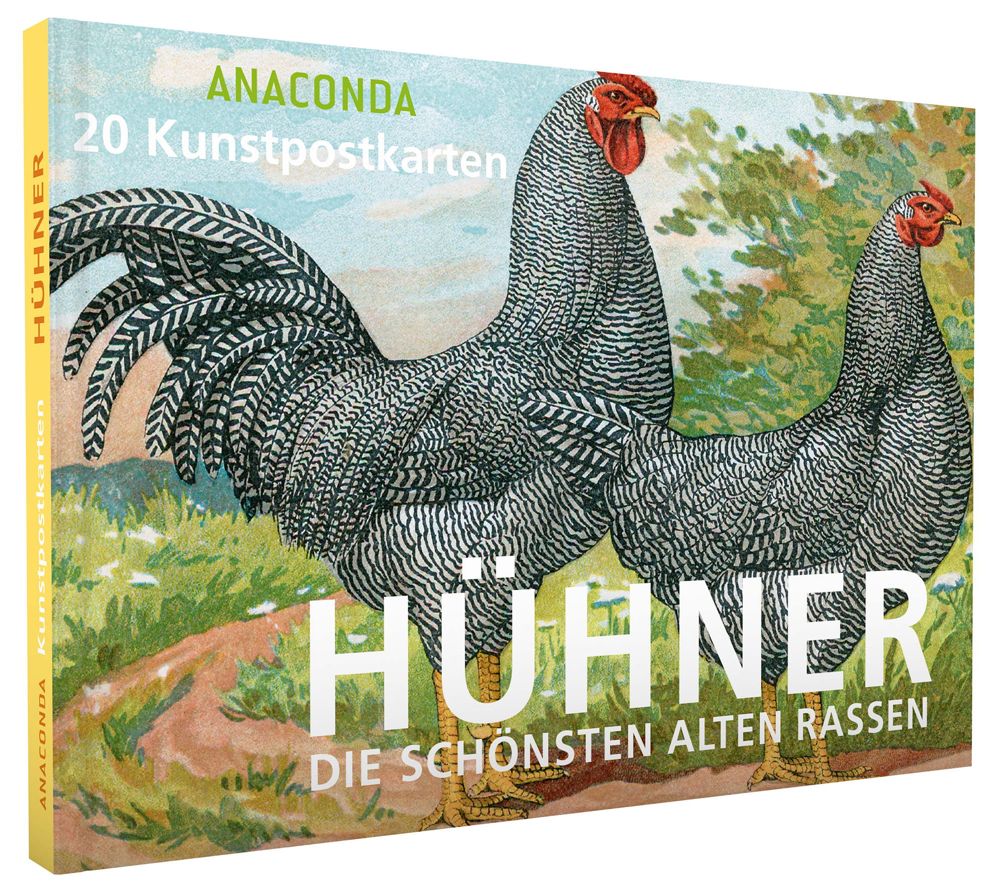 Ob Hobbyhühnerhaltung oder professionelle Geflügelzucht - Hühner gehören seit Jahrtausenden zum Alltag der Menschen. Cochin und Brahma, Dominikaner und Wyandotte, Seidenhuhn und Zwerghuhn, sie alle zeugen von der faszinierenden Vielfalt der Hühnerrassen der Welt. Die Postkarten mit historischen Abbildungen zeigen 20 der schönsten bekannten Rassehühner.