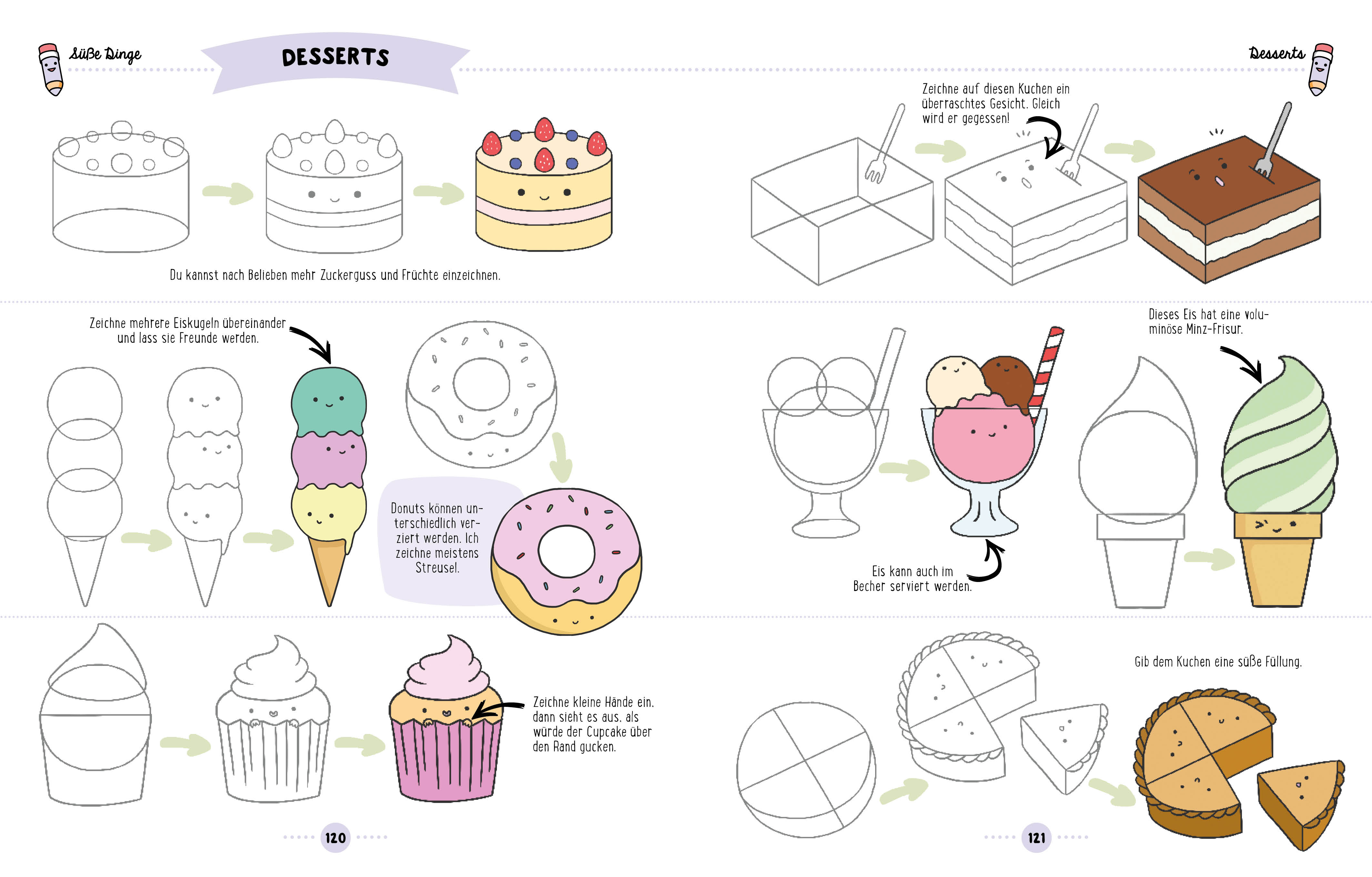 Süßer geht's nicht! 450 niedliche Tiere, Pflanzen und Häuser machen jedes Manga erst vollständig. Die Kawaii-Projekte lassen sich in maximal drei Schritten nachzeichnen, mit den schematischen Step-by-Step-Anleitungen kommt jeder im Handumdrehen zu einem bezaubernden Endergebnis. Ob kuscheliger Flamingo, niedliches Faultiers, cooles Eishörnchen oder zuckersüßer Donut - diese ästhetischen und beliebten Maskottchen sind an Niedlichkeit nicht zu übertreffen!