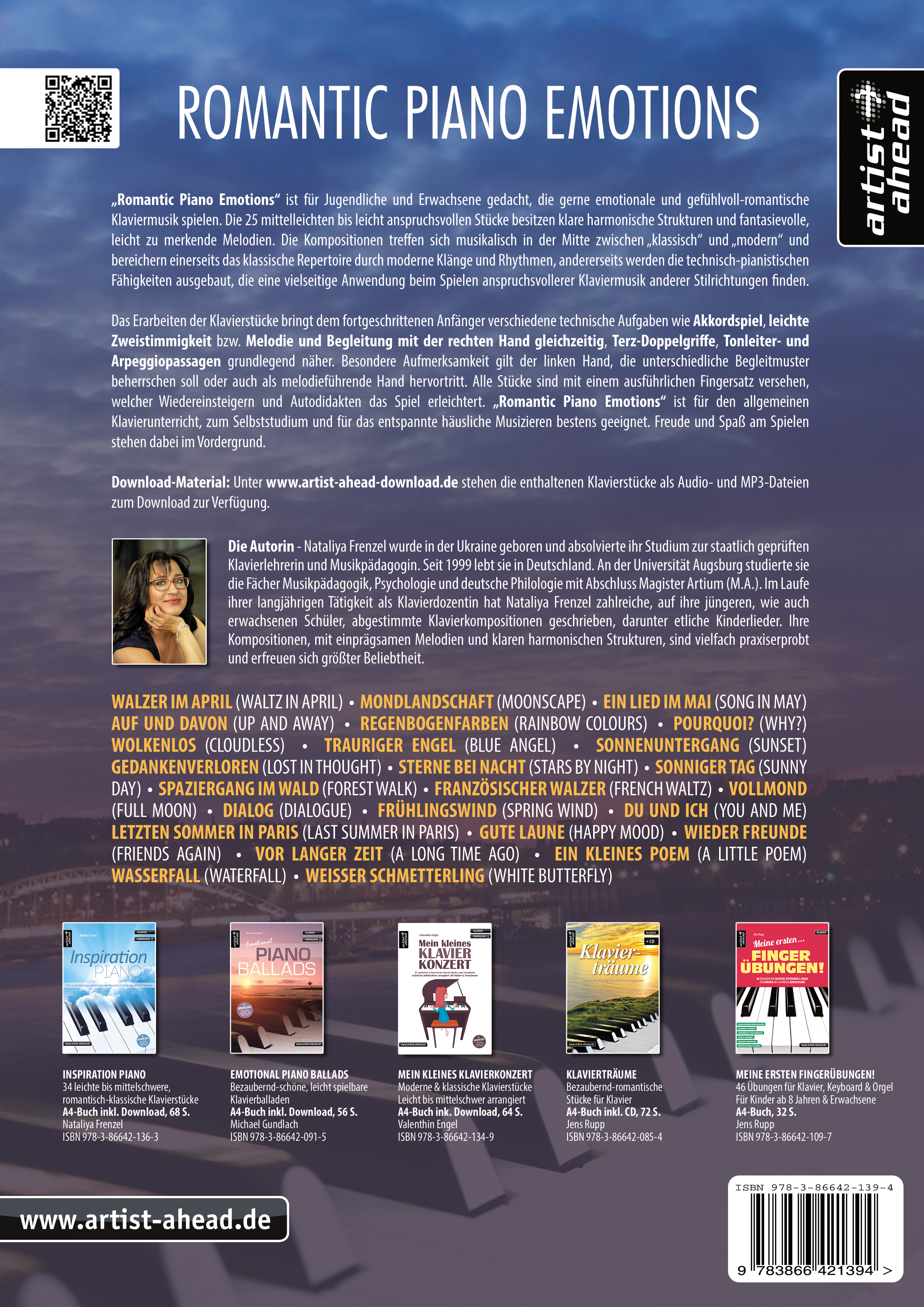 Unter artist-ahead-download.de stehen die enthaltenen Klavierstücke als Audio- und MP3-Dateien zum Download zur Verfügung. Eine Audio-CD mit allen Titeln zu diesem Buch ist in unserem Onlineshop unter artist-ahead.de erhältlich.