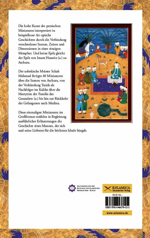 Die hohe Kunst der persischen Miniaturen interpretiert in beispielloser Art epische Geschichten durch die Verbindung verschiedener Szenen, Zeiten und Dimensionen in einer einzigen Metapher. Und keine Epik gleicht der Epik von Imam Hussein (a.) zu Aschura.