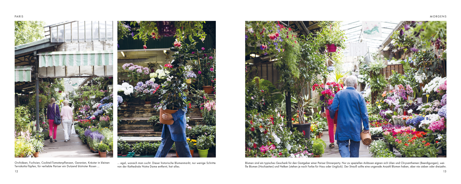 Der Aufbau des Buches folgt einem Tagesablauf und beschreibt sämtliche Facetten des Pariser Lebens: