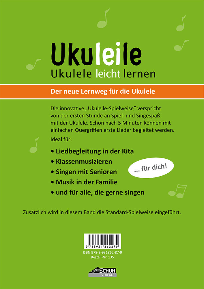 Die innovative "Ukuleile-Spielweise" verspricht von der ersten Stunde an Spiel- und Singespaß mit der Ukulele. Schon nach 5 Minuten können mit einfachen Quergriffen erste Lieder begleitet werden!