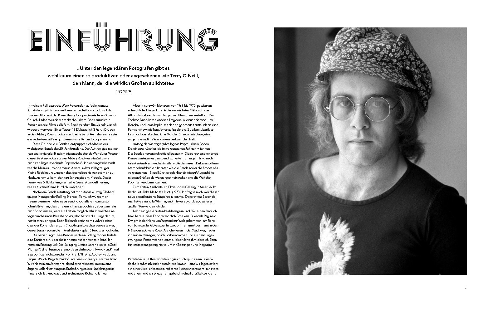 O'Neill, Terry Sean Connery, Audrey Hepburn, Frank Sinatra, die Queen - Terry O'Neill hatte sie alle vor der Linse. Am bekanntesten wurde der verhinderte Musiker aber durch seine Porträts von Rock- und Pop-Legenden wie den Stones oder David Bowie. Elton John fotografierte der Chronist mit der Kamera zum ersten Mal Anfang der 70er, weil er neugierig auf den Mann hinter der unglaublichen Stimme aus dem Radio war. Dies war der Beginn einer fruchtbaren Zusammenarbeit und engen Freundschaft.
