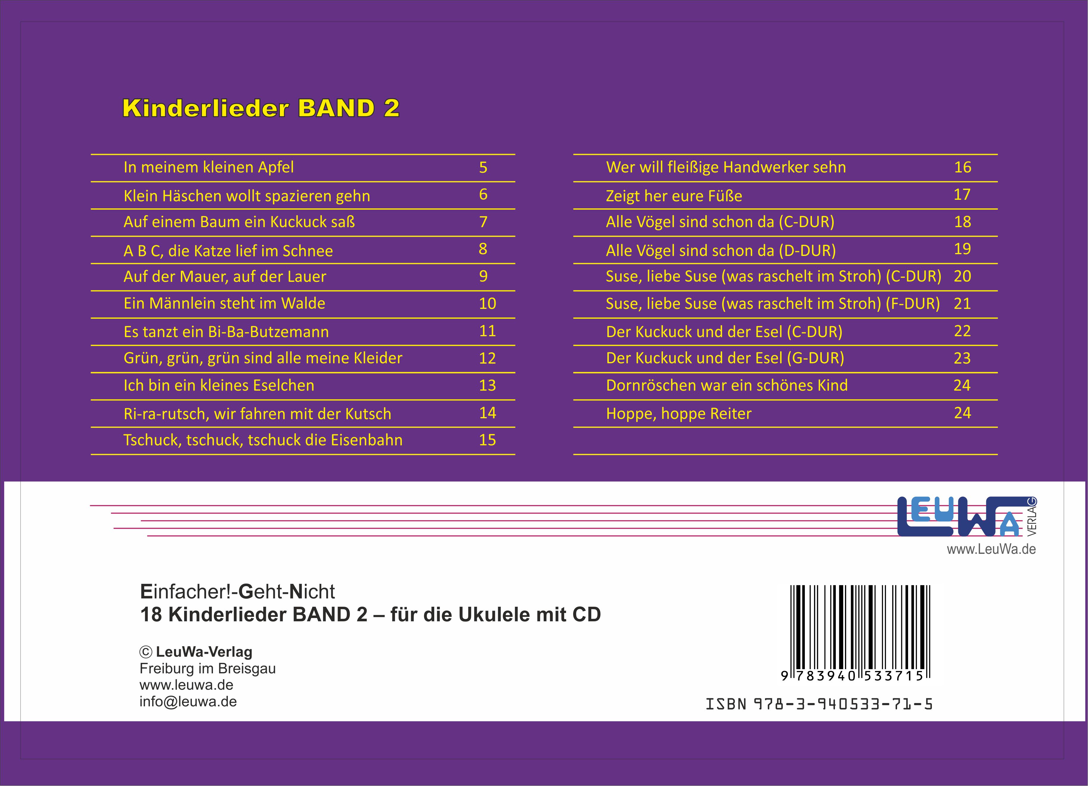 Einfacher!-Geht-Nicht: 18 Kinderlieder BAND 2 – für die Ukulele mit CD