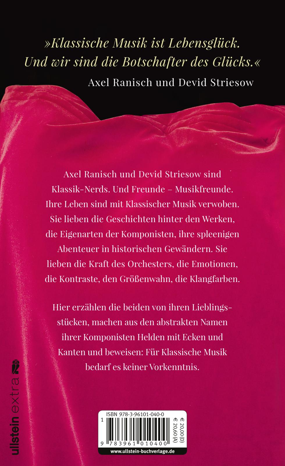 Axel Ranisch und Devid Striesow sind Klassik-Nerds. Und Freunde - Musikfreunde. Ihre Leben sind mit Klassischer Musik verwoben. Sie lieben die Geschichten hinter den Werken, die Eigenarten der Komponisten, ihre spleenigen Abenteuer in historischen Gewändern. Sie lieben die Kraft des Orchesters, die Emotionen, die Kontraste, den Größenwahn, die Klangfarben: Gustav Mahler macht sie fertig, und bei Bach fühlen selbst die zwei atheistischen Ossis ein übersinnliches Leuchten in sich.