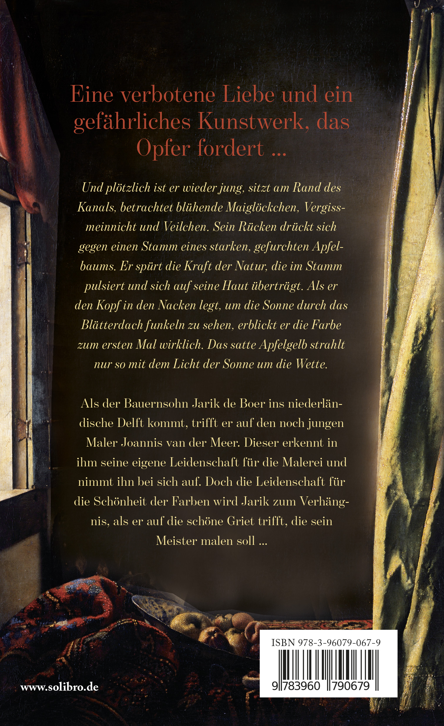 Der spannende historische Roman versetzt die Leser ins niederländische Delft des 17. Jahrhunderts. Als der Bauernsohn Jarik de Boer nach Delft kommt, trifft er auf den noch jungen Maler Joannis van der Meer. Dieser erkennt in ihm seine eigene Leidenschaft für die Malerei und nimmt ihn bei sich auf. Doch die Leidenschaft für die Schönheit der Farben wird Jarik zum Verhängnis, als er auf die schöne Griet trifft, die sein Meister malen soll ...