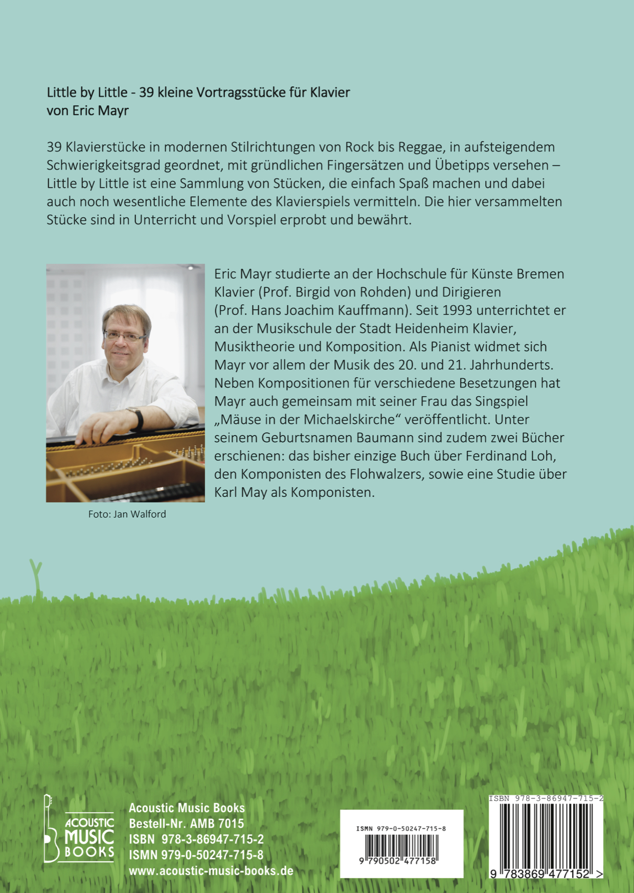 39 Klavierstücke in modernen Stilrichtungen von Rock bis Reggae, in aufsteigendem Schwierigkeitsgrad geordnet, mit gründlichen Fingersätzen und Übetipps versehen - Little by Little ist eine Sammlung von Stücken, die einfach Spass machen und dabei auch noch wesentliche Elemente des Klavierspiels vermitteln. Die hier versammelten Stücke sind in Unterricht und Vorspiel erprobt und bewährt.