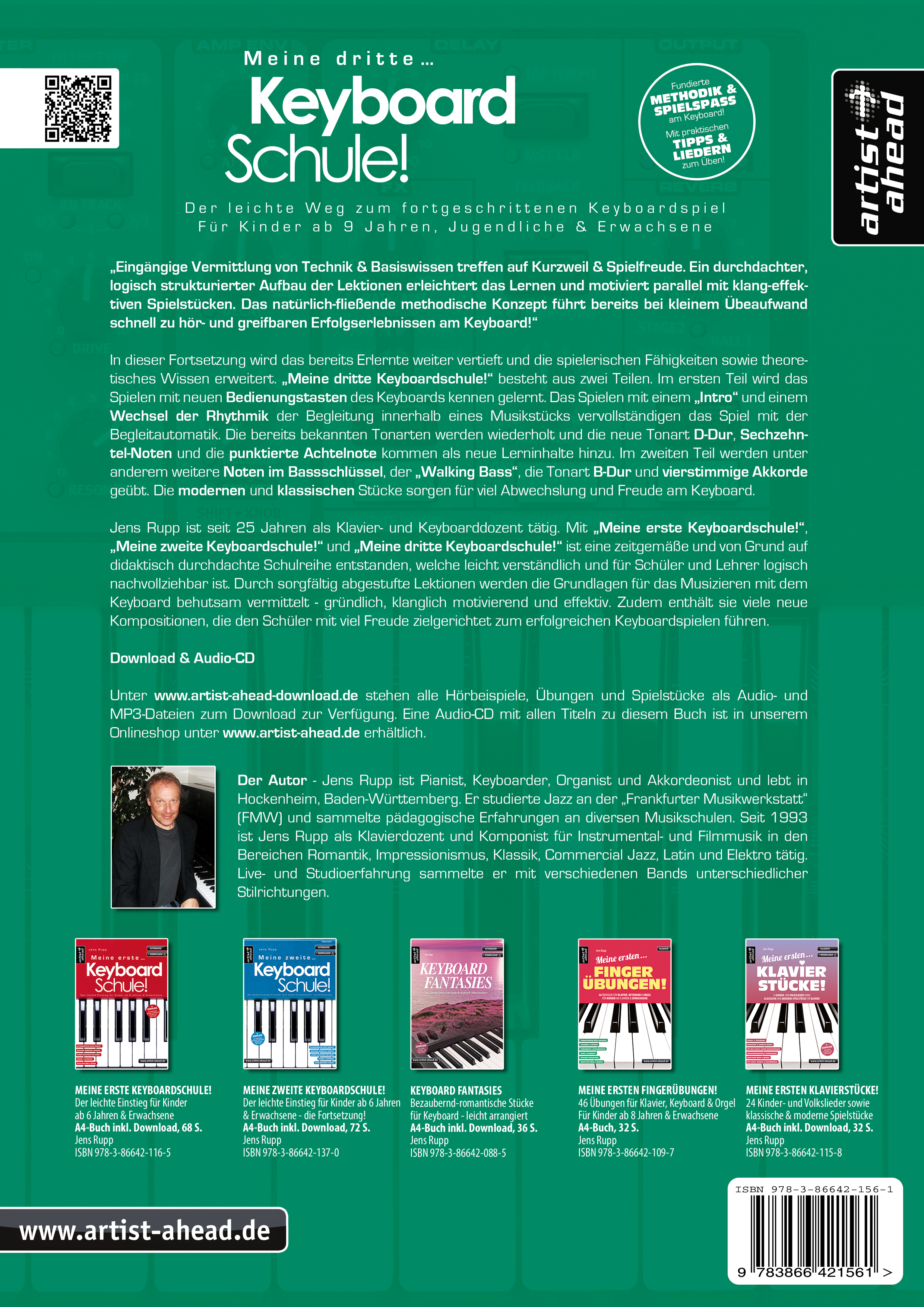 Jens Rupp ist seit 25 Jahren als Klavier- und Keyboarddozent tätig. Mit "Meine erste Keyboardschule!", der Fortsetzung "Meine zweite Keyboardschule!" und "Meine dritte Keyboardschule!" ist eine zeitgemäße und von Grund auf didaktisch durchdachte Schulreihe entstanden, welche leicht verständlich und für Schüler und Lehrer logisch nachvollziehbar ist. Durch sorgfältig abgestufte Lektionen werden die Grundlagen für das Musizieren mit dem Keyboard behutsam vermittelt - gründlich, klanglich motivierend und effektiv. Zudem enthält sie viele neue Kompositionen, die den Schüler mit viel Freude zielgerichtet zum erfolgreichen Keyboardspielen führen.