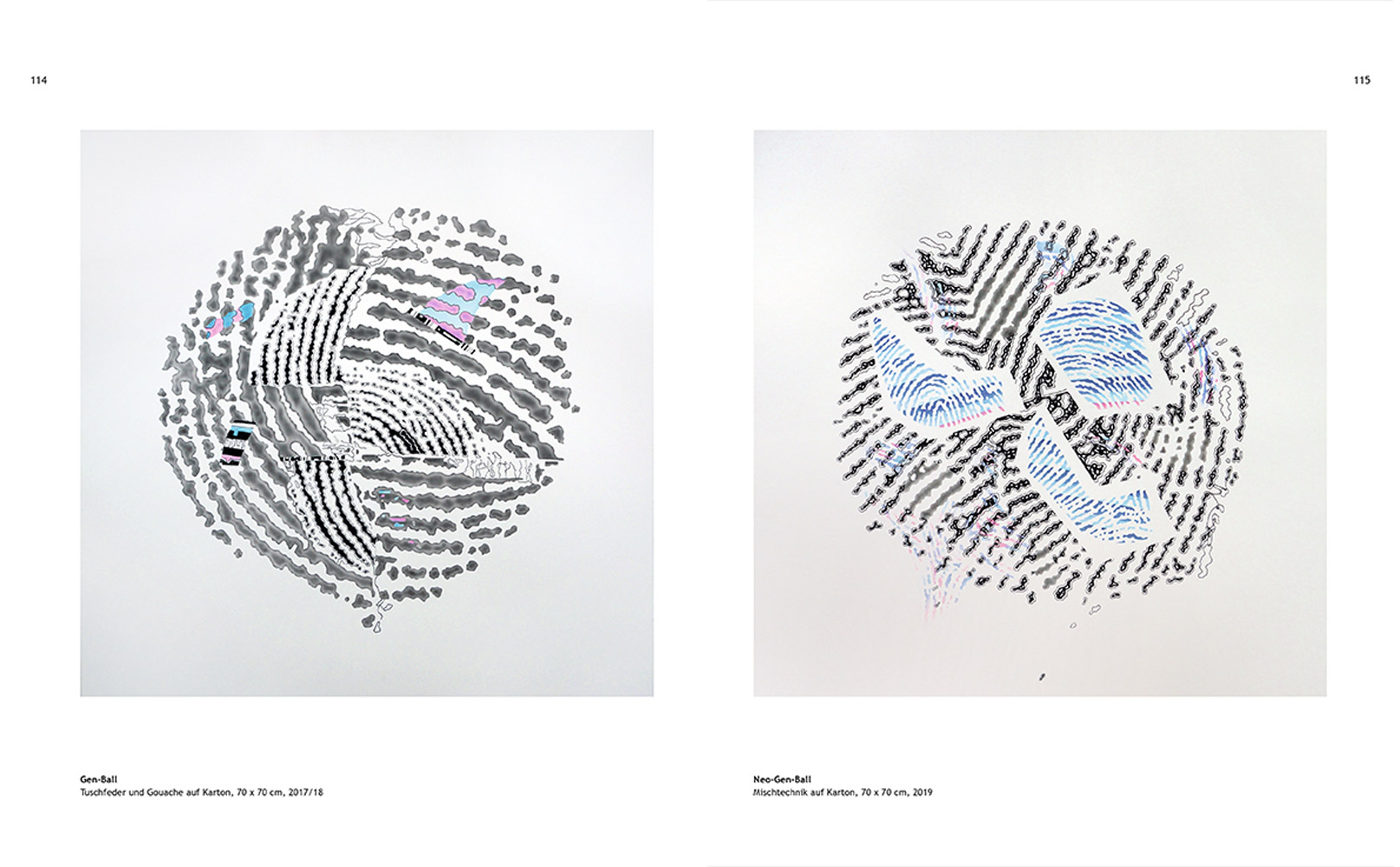Ohne Frage zieht die Technik Angela Garry in ihren Bann, sonst könnte man sich die Lust an deren Darstellung genauso wenig vorstellen wie deren Schrecken. Insbesondere die Medientechnik ist in der Lage, unsere weltweite Kommunikation zu revolutionieren, aber auch unser Denken zu beeinflussen, ja sogar Besitz von uns zu ergreifen. Dass der Mensch Spuren hinterlässt, ist von jeher ein Lebenstraum. Dass er in unsrer Zeit auch ungewollt Spuren nicht nur im richtigen Leben, sondern freiwillig oder unfreiwillig auch im virtuellen Datennetz hinterlässt, kann zum Alptraum werden. Garry befasst sich seit fast vier Jahrzehnten mit dieser Thematik. Fokussiert auf die Schreib-Maschinerie, entfaltet die Künstlerin mit nüchterner, bisweilen (selbst)ironischer Akribie eine Reihe von Bildserien, welche Mensch, Maschine und Gesellschaft in eins bindet. ›Schreib-Maschinerie‹ mag kalt, wenn nicht brachial klingen, gemessen an Garrys fein dosierter Spraytechnik. Es würde aber nicht weit genug reichen, wenn hier von der Schreibmaschine die Rede wäre, die tatsächlich zum Basismotiv in diesem Werk gehört. Von hier aus ziehen sich zwei Linien durch das künstlerische Schaffen der Künstlerin, die bereits nach dem Abitur ihr Thema – Mensch und Maschine –, doch erst nach ihrer Ausbildung bzw. ihrem Studium bei H. K. Schlegel und K. R. H. Sonderborg zu ihrer filigranen Bildsprache fand.