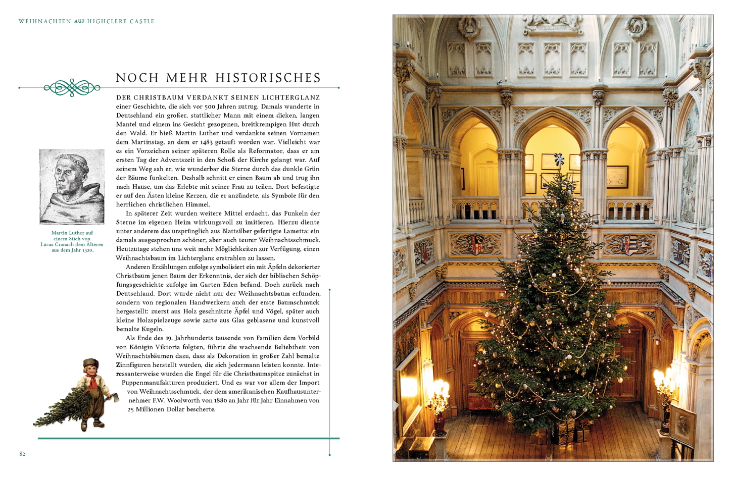 Dieses Buch erzählt von Weihnachten, wie es heute auf Highclere Castle gefeiert wird, wirft aber auch einen Blick zurück in die Geschichte historischer Weihnachtsfeiertage in dem tausend Jahre alten Schloss, an denen sich hochkarätige Gäste nach einer langen Reise durch Schnee und Kälte am Feuer wärmten und Familie und Personal nach einem arbeitsreichen Jahr zusammenkamen, um gemeinsam zu feiern. Historische Dokumente, Fotos und handschriftliche Listen lassen diese Zeit lebendig werden und berichten authentisch von der Geschichte Highcleres.