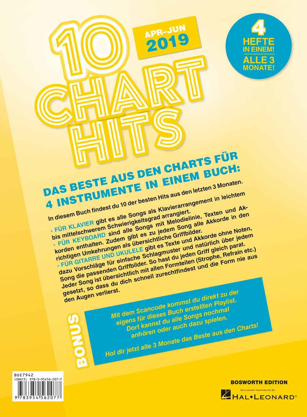 Die neue Reihe „10 Charthits“ enthält 10 der besten Hits der letzten 3 Monate für 4 Instrumente in einem Buch: Für Klavier gibt es alle Songs als Klavierarrangement in leichtem bis mittelschweren Schwierigkeitsgrad arrangiert.