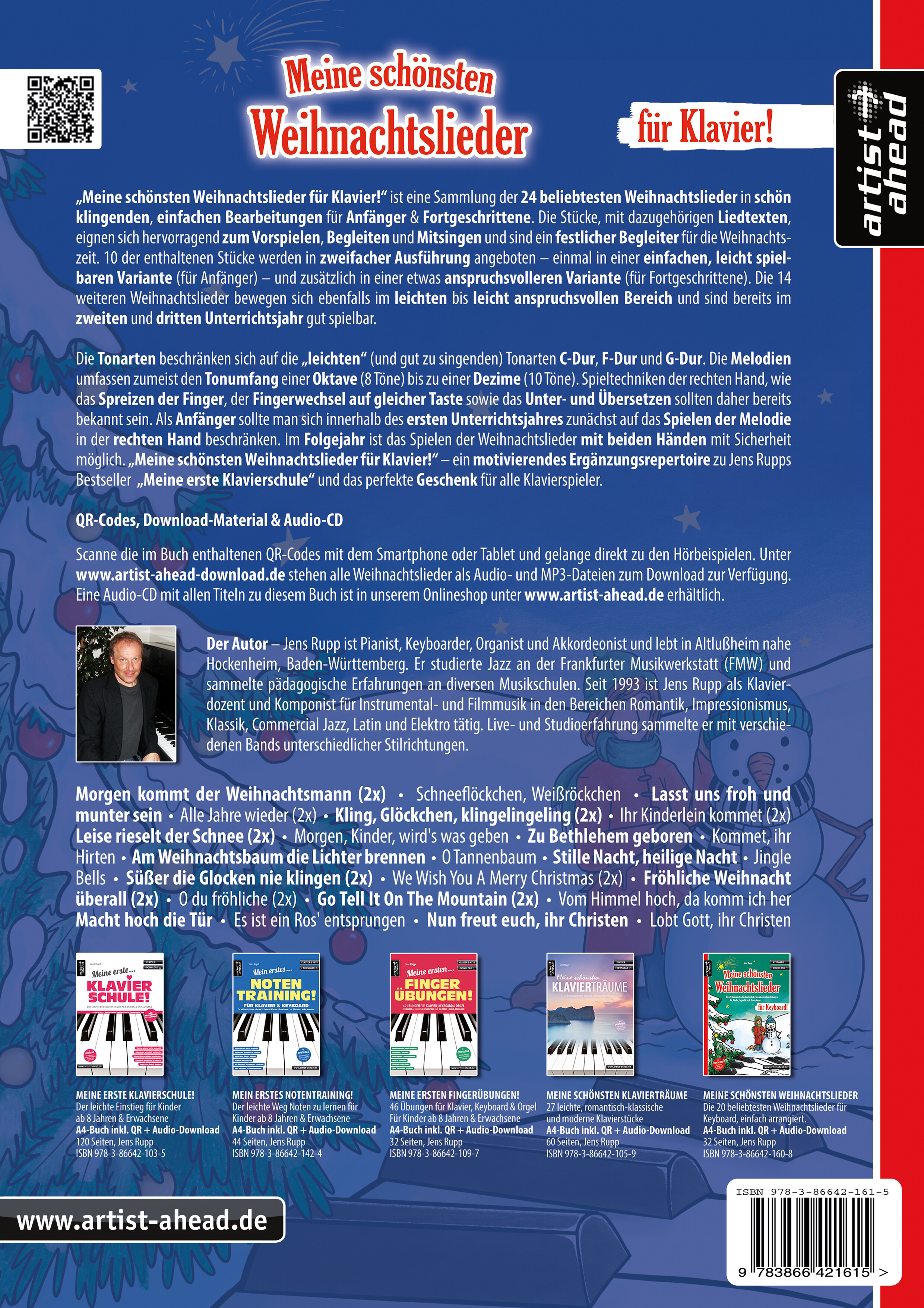 Scanne die im Buch enthaltenen QR-Codes mit dem Smartphone oder Tablet und gelange direkt zu den Hörbeispielen. Unter artist-ahead-download.de stehen die Weihnachtslieder als Audio- und MP3-Dateien zum Download zur Verfügung. Eine Audio-CD mit allen Titeln zu diesem Buch ist in unserem Onlineshop unter artist-ahead.de erhältlich.