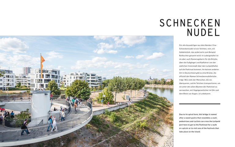 Eine Stadt ist immer ein Zusammenspiel aus Plätzen, Gebäuden, Wegen, Straßen, Läden, Unternehmen, Pflanzen, Tieren … – und vor allem: aus den Menschen, die in ihr leben. Dem Label der „häßlichsten Deutschlands” setzen wir das schönste Buch über Ludwigshafen entgegen. Ludwigshafen bietet Besuchern und Einwohnern eine wilde Mischung aus viel Natur und viel chemischer Industrie, Kunst und Kultur satt, viel Wasser, vielen schönen Ecken und auch einigen Kanten. Die Stadt wird geformt von ganz unterschiedlichen und oft innovativen Bauten und atmet sowohl in ihren sehr alten Ortsteilen als auch in ihren ganz jungen erstaunlich frische Luft. Insgesamt verkörpert sie einen spannenden Raum, in dem vieles stark im Fluss ist. So wie der Rhein, der das Leben vor Ort schon immer geprägt hat und der Ludwigshafen einen Namen mit Heimatgefühl schenkte. Inzwischen sind Menschen aus 142 Nationen in diesem Hafen verankert. Haben Sie Lust, diese vielseitige Stadt spielerisch (neu) zu entdecken?