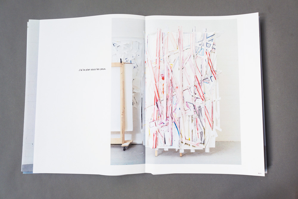Für diesen Zustand suchte ich nach einer Autorin oder einem Autor und entdeckte die Arbeit von Julien Maret. Seine fragmenthafte Schreibweise hat mich angesprochen, weil ich ähnlich arbeite. Bei einer meiner Ausstellungen in Saint-Maurice löst sich das Ganze in akribische Beobachtungen von Details, Nebensächlichkeiten und Handlungen auf. Maret nimmt diese Installation zum Anlass für seinen assoziativen Text. Es ist wirklich erstaunlich, wie der Text es schafft, zwischen Bild und Text zu navigieren, wobei einiges konkreter wird und einiges auf angenehme Art mysteriös bleibt. Das passte mir sehr.