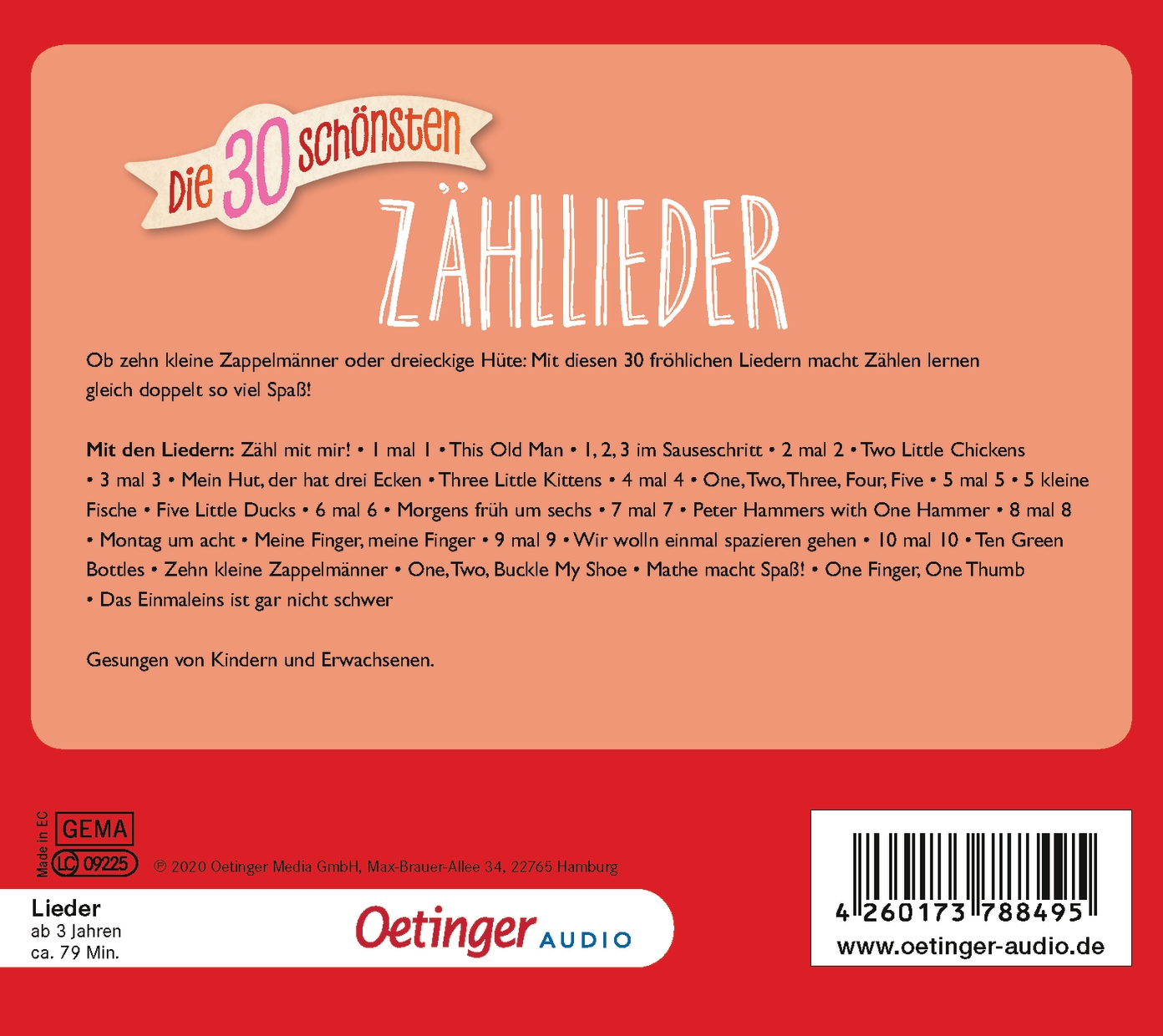 Die 30 schönsten Zähllieder, 1 Audio-CD