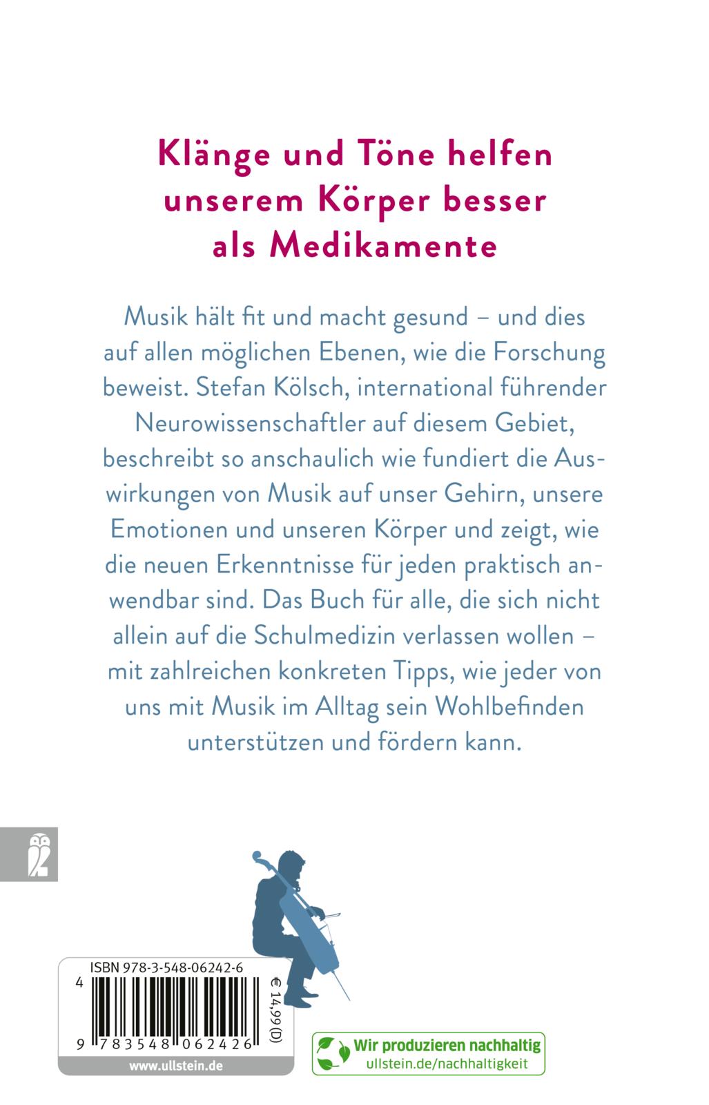 Musik ist nicht nur schön - sie bewahrt auch unsere Gesundheit, hält jung und verbessert den Spracherwerb. Sie hilft bei Schlaganfall, chronischen Krankheiten und Demenz. Sie wirkt geradezu Wunder bei Wachkomapatienten. Die Bedeutung von Klängen und Melodien für unsere Psyche und unseren Körper findet immer mehr Beachtung und ist inzwischen unumstritten. Stefan Kölsch zeigt uns anhand vieler Beispiele aus seinem Forschungsbereich, weshalb Musik in allen Formen eine immer größere Rolle bei der Vorbeugung und Behandlung ganz unterschiedlicher Krankheiten einnimmt, sodass sie inzwischen einen neuen Wissenschaftszweig in der Gesundheitsforschung fundiert. Und er liefert zahlreiche konkrete Tipps, wie jeder von uns mit Musik im Alltag sein Wohlbefinden unterstützen und fördern kann.