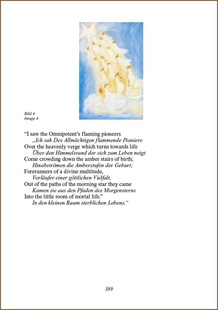 On the following pages of this book the Savitri text passages Book I to III, chosen by Mira Alfassa – The Mother, are published in English and German along with the reproductions of the relevant paintings. The images related to the text passages can furthermore be experienced in a spiritually uplifting and awareness intensifying way as animated film art synchronized with the original English soundtrack of the recitations and the music by Mira Alfassa – The Mother released on DVDs and downloads featuring the complete Meditations on Savitri movie series. Thus the Meditations on Savitri series is a grand holistic creation of movie art, authorized by Mira Alfassa – The Mother revealing the vastness, the meaning and the consciousness of Sri Aurobindo’s spiritual epic poem Savitri through the expressive art of poetry, recitation, music, paintings and movie art created by Sri Aurobindo, Mira Alfassa – The Mother, Huta Hindocha and Michel Montecrossa.