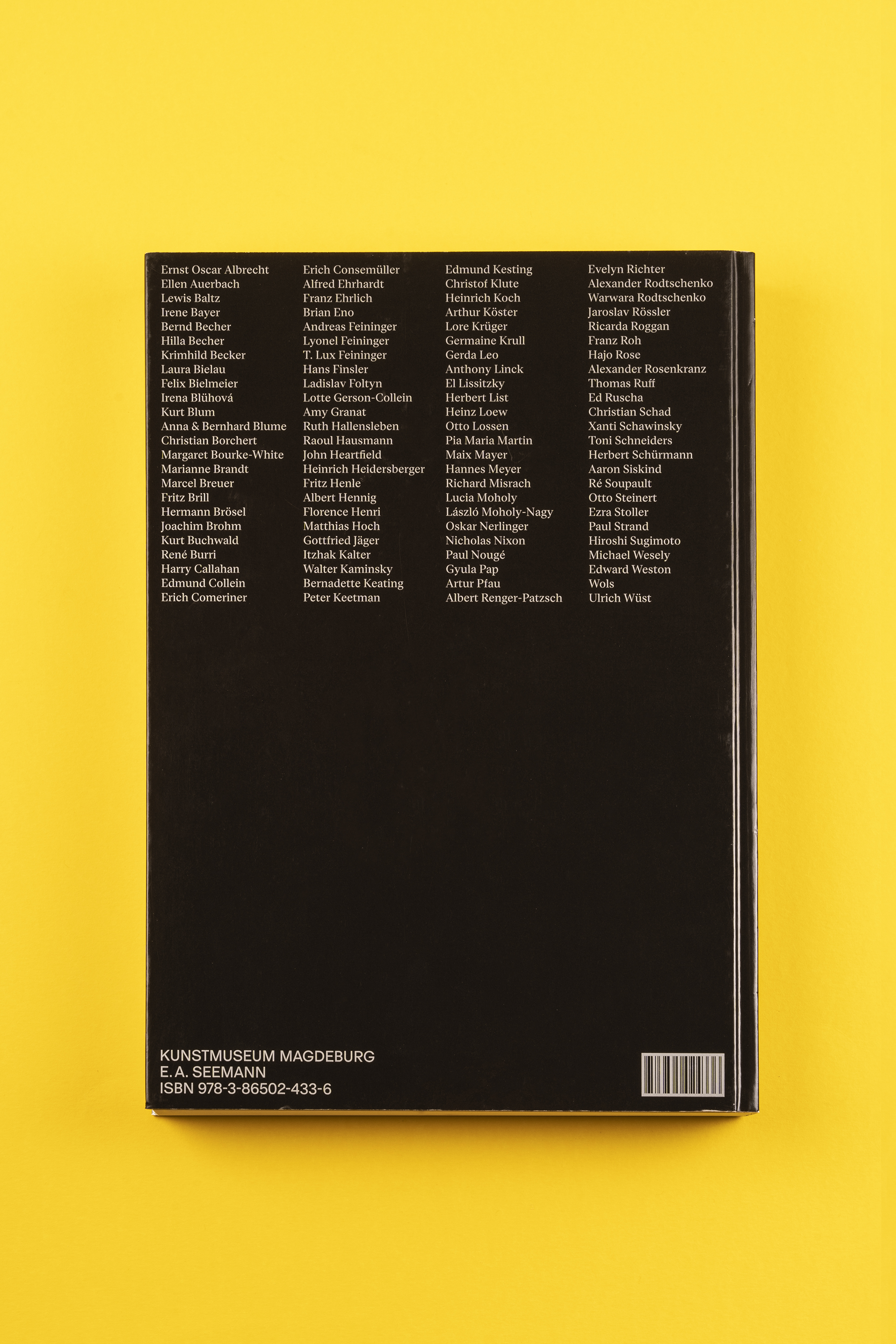 Der Band, in bauhaustypischer Gestaltung und mit Hardcover, präsentiert Werke namhafter Fotografen von 1919 bis 2019: Erich Consemüller, Christian Schad, Alexander Rodtschenko, Hilla und Bernd Becher, T. Lux Feininger, Maix Mayer, Lucia Moholy, László Moholy-Nagy, Albert Renger-Patzsch, Wols und zahlreiche anderen.