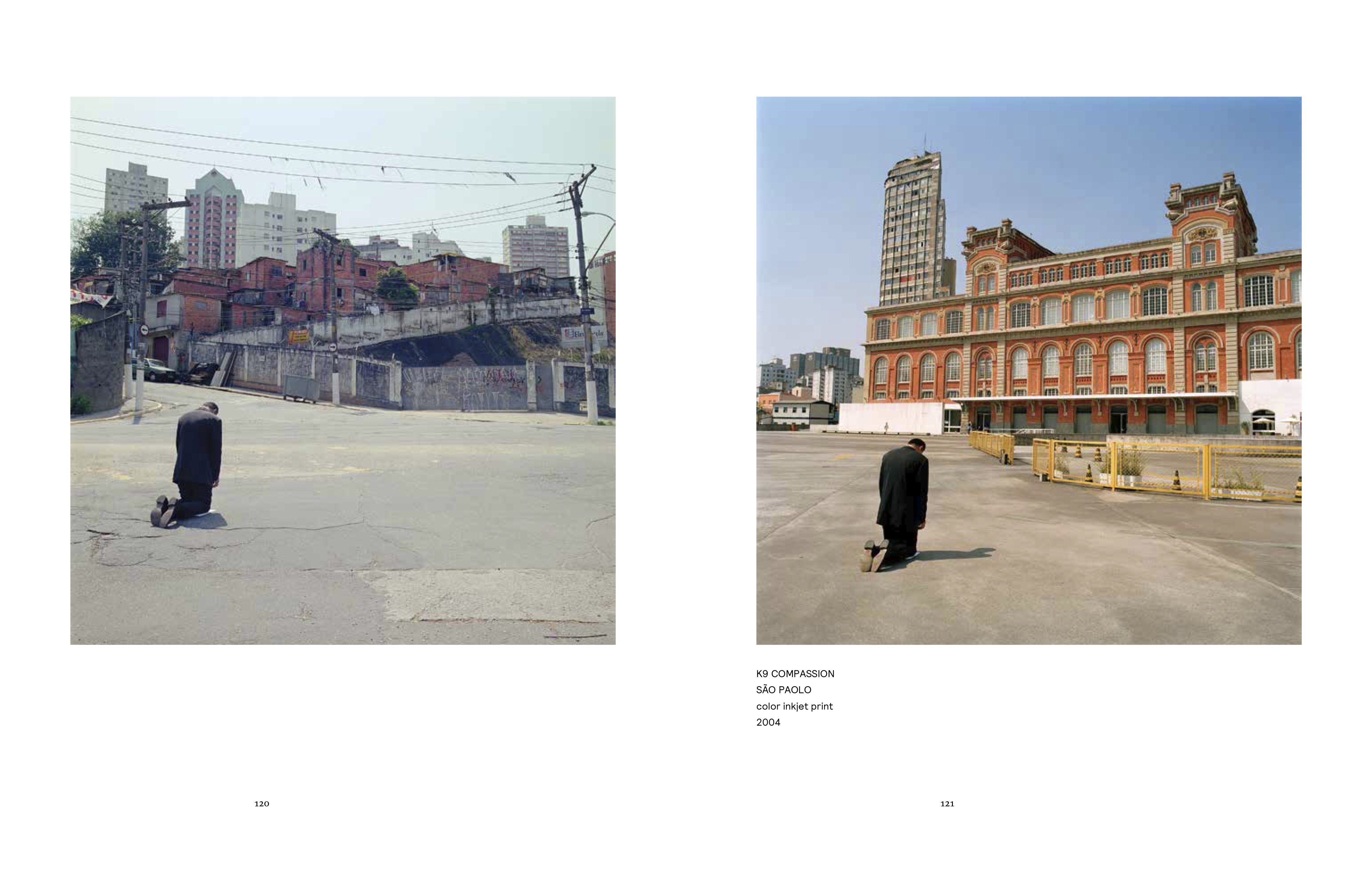 Zlatko Kopljar (born 1962 in Zenica, Bosnia and Herzegovina; lives and works in Zagreb, Croatia) critically examines contemporary history in his performances, video works, and installations. He calls his works "constructions" because they question and reconstruct patterns of memory, both during the performative creation process and in their reception. In the photo series "K9 Compassion", his act of kneeling in front of places such as New York's Wall Street, the EU Commission in Brussels, or the Duma in Moscow is a compelling pose of powerlessness against global power structures. With this clear and potent gesture of humility, Kolpjar symbolically calls for reflection.