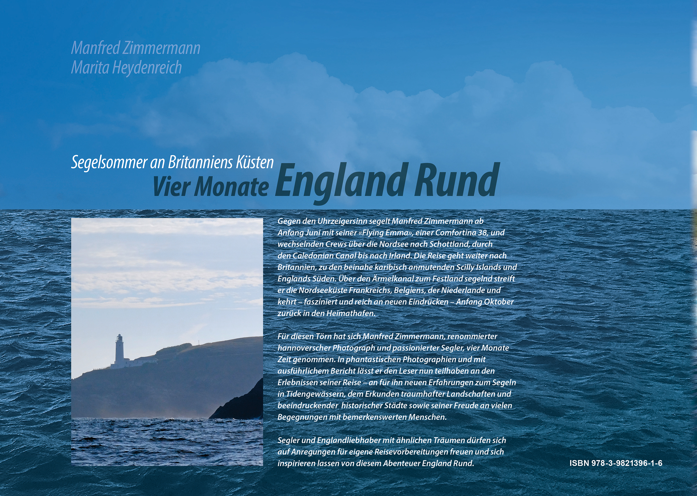| Schlagworte | Abenteuer • Abenteuerlich • Abenteuerlust • Abenteuerreise • Abenteurer • Aktivurlaub • Amsterdam • anspruchsvoll • Arklow • Ärmelkanal • Atlantik • Aufbrechen • Aufbruch • aussteigen • Aussteiger • Auszeit • Bangor • Bath • bebildert • Belgien • Bildband • Bootseigner • Brighton • Britannien • Brügge • Caledonian Canal • Cowes • Dartmouth • Dover • Dublin • England • Englandrund • England Rund • Erfahrungsbericht • Erlebnisreise • Erlebnisse • Europa • Fahrtensegeln • Fahrtensegler • Falmouth • Faszination • Fernweh • Fortgeschritten • Fotograf • Fotografie • Freiheit • gezeitensegeln • Großbritannien • Häfen • Hafenstädte • Harlingen • Helgoland • Herausforderung • Heydenreich, Marita • Highlands • hochseesegeln • Horizont • Howth • Ijsselmeer • Individualreisen • Inselumrundung • Inverness • Irland • Islay • Isle of Wight • Isles of Scilly • Kultur • Küste • Küsten • Küstensegler • Küstenstädte • Landgang • Landgänge • Land und Leute • Loch Ness • Marinas • Maritim • Meer • Navigation • Navigieren • Niederlande • Nordeuropa • Nordirland • Nord-Ostsee-Kanal • Nordsee • Nordseeüberquerung • Oban • Oostende • overfalls • Ozean • Padstow • Peel • Penzance • Photograph • Plymouth • Port Ellen • Reise • Reisebericht • Reiseerfahrungen • Reisefotografie • Reisefotos • Reiselust • Reisen • Reisepläne • Reiseplanung • Reisetagebuch • Reiseträume • Reiseziele • Rundreise • Schottland • Scilly Islands • Seereise • Segelbegeisterung • Segelboot • Segelerfahrung • Segelleidenschaft • Segeln • Segelreise • Segelrevier • Segelreviere • Segelsaison • Segelschiff • Segelsommer • Segelsport • Segeltörn • Segler • Sehenswürdigkeiten • Sehnsucht • Sightseeing • Skipper • Sommer • St. Mary's • Südengland • Swansea • Tidengewässer • Törnbericht • Törnplanung • Törnvorbereitung • Tresco • Urlaub • Urlaubsorte • Urlaubsreise • Wagemut • wagemutig • Wagen • Wagnis • Wassersport • Wassersportler • Weite • Wellen • Weltkulturerbe • Weltmeere • Wind • Yachthäfen • Yachtsegeln • Yachtsport • Zimmermann, Manfred |