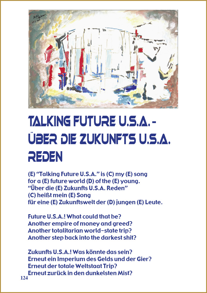 | Schlagworte | ART • Band • Brexit • climate change • Compassion • Concert Tour • Drawings • EU • Eurasien • Europäische Union • Flüchtlinge • freedom • Frieden • Future • Gemälde • images • Klimawandel • Kunst • Liebe • Love • Mirapuri • Montecrossa, Michel • music • Paintings • Peace • Photos • Refugees • Song Lyrics • Songtexte • UNITY • USA • Zeichnungen • Zukunft |