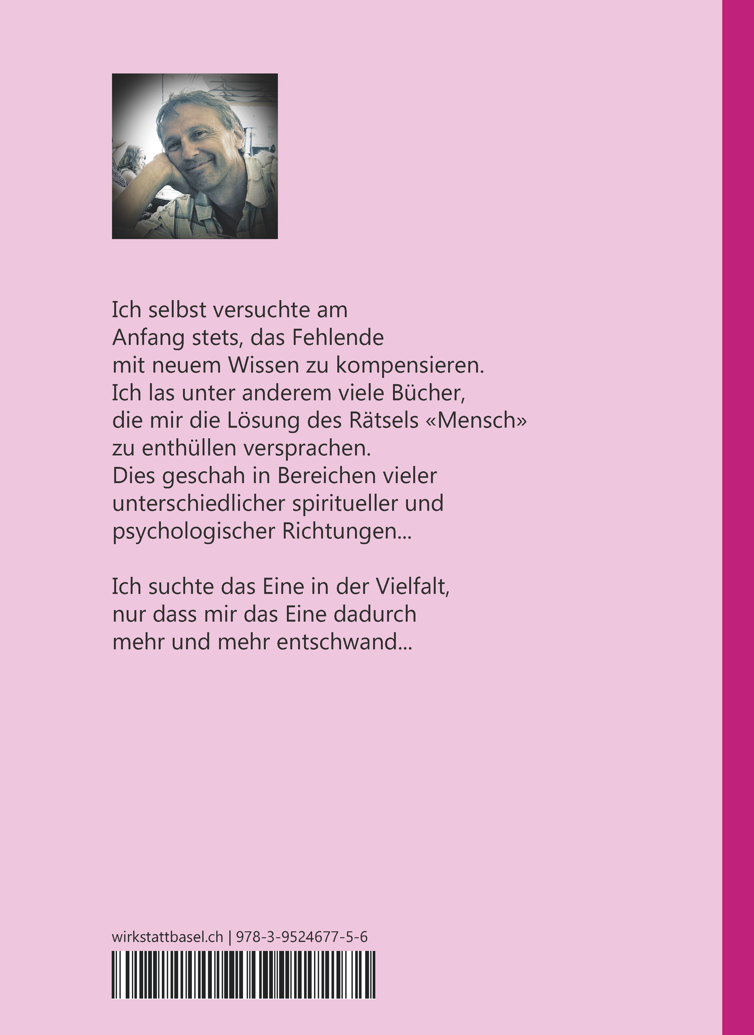 Ich selbst versuchte am Anfang stets, das Fehlende mit neuem Wissen zu kompensieren. Ich las unter anderem viele Bücher, die mir die Lösung des "Rätsels Mensch" zu enthüllen versprachen. Dies geschah in Bereichen vieler unterschiedlicher spiritueller und psychologischer Richtungen. Ich suchte das Eine in der Vielfalt, nur dass mir das Eine dadurch mehr und mehr entschwand.