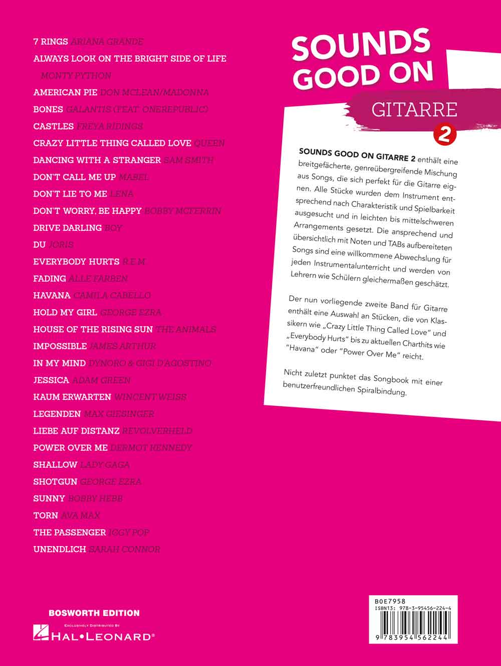 Der nun vorliegende zweite Band für Gitarre enthält eine Auswahl an Stücken, die von Klassikern wie „Crazy Little Thing Called Love“ und „Everybody Hurts“ bis zu aktuellen Charthits wie “Havana“ oder “Power Over Me“ reicht.