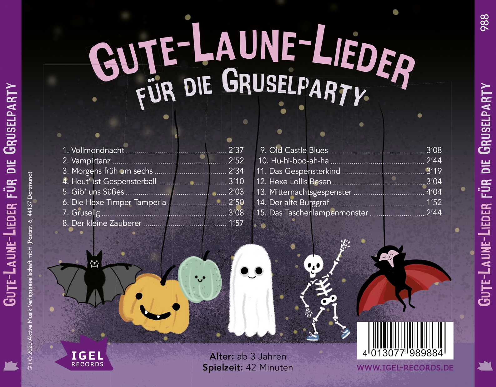| Schlagworte | Halloween • Kinderbuch ab 3 • Kinderlieder • Lieder • Party |