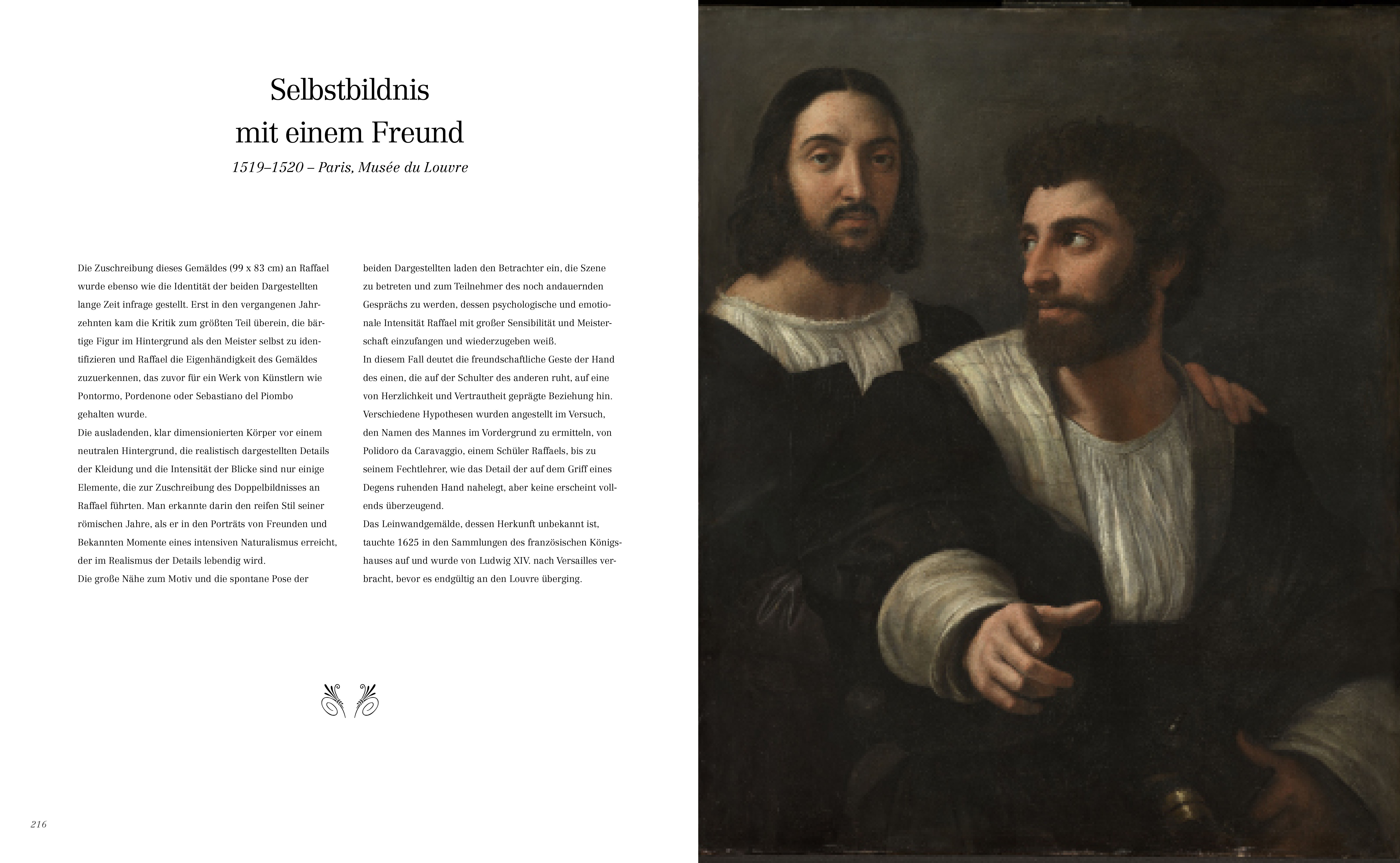 Raffael - Meister der klassischen Schönheit. Erkunden Sie anlässlich der 500. Wiederkehr seines Todestages in herausragenden Gemälden und Zeichnungen seine Karriere als Maler: die Freskenzimmer im Vatikan, grazile Madonnen, Persönlichkeiten der Renaissance. Seinen Porträts - berühmt für menschliche Wärme und Natürlichkeit- widmet dieser große Bildband ganz besondere Aufmerksamkeit.