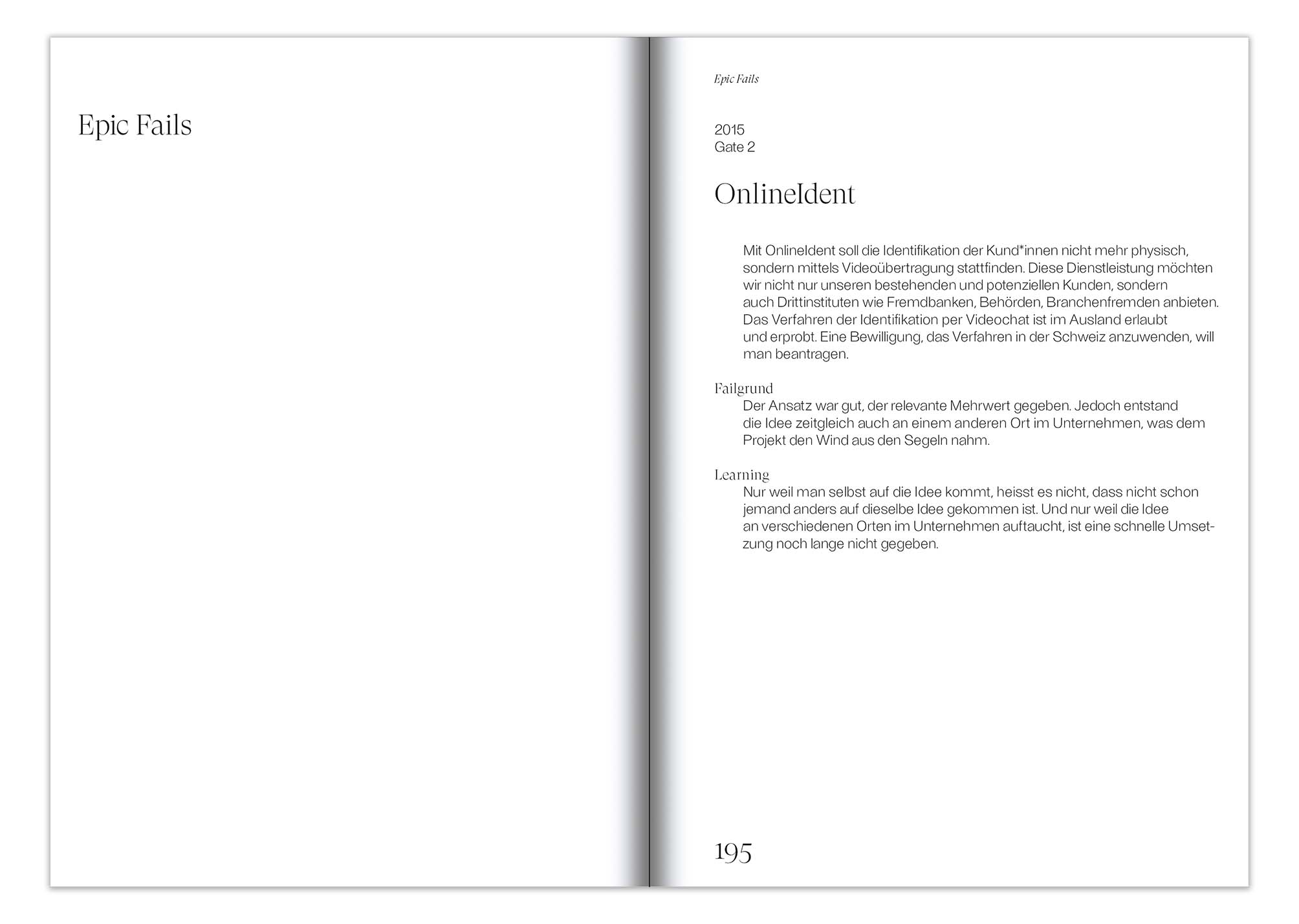 Direkt aus dem Tagesgeschäft heraus entstand das «Failbook»: Die informative und anregende Zusammenstellung von «Epic Fails» bis zu «Happy Failures» aus dem Innovationsprozess eines etablierten Unternehmens zeigt auf, wie Fehlschläge bewusste Lernprozesse anstoßen und zu neuen Erkenntnissen führen können. Angereichert mit witzigen, selbstkritischen Kommentaren und einer augenzwinkernden Bildstrecke aus der eigenen Bürolandschaft.