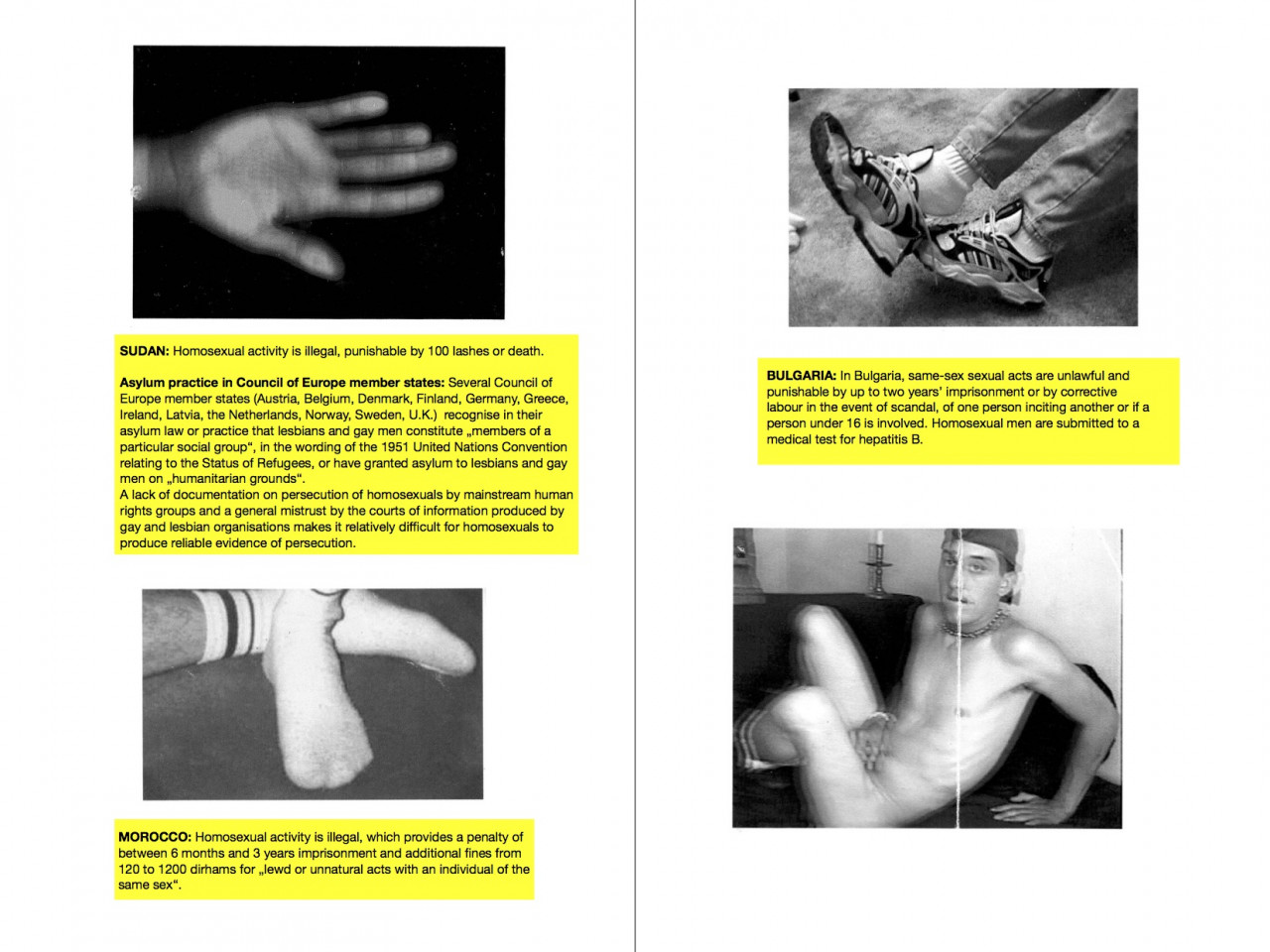 "Getting your disco act together." Guy Hocquenghem besuchte New York und wohnte bei mir in meinem Loft auf der Chambers Street. Eines Nachts, während ich aus war, las er, was ich geschrieben hatte. Als ich zurückkam, meinte er, so unverblümte Beschreibungen der schwulen Kultur seien genau das, was Schwulenaktivisten schreiben sollten. - Douglas Crimp (übersetzt aus Disss-co (A Fragment). Douglas Crimp (geb. 1944 in Coeur d'Alene, USA; gestorben 2019) war einer der einflussreichsten Kunstkritiker, Kuratoren und Aids-Aktivisten seiner Zeit. Seine Schriften zu Repräsentationen und Kritik sind bis heute unangetastete Meilensteine in der Auseinandersetzung mit Aids und queerer Ästhetik. In seiner Pionierarbeit zu queerer Subkultur und der Underground-Szene in New York markiert der Essay Disss-co (A Fragment) einen grundlegenden Standpunkt, der heute mit Blick auf die Verdrängung von Subkultur - aufgrund von Sexualität und Herkunft - ungebrochene Aktualität besitzt. Henrik Olesen (geb. 1967) beschäftigt sich in seiner Arbeit mit sexualpolitischen Fragen. In der vorliegenden Publikation zeigt er Auszüge aus dem Projekt Lack of Information, 2001. Im Raster angeordnet, präsentiert die Arbeit eine Landkarte von unterschiedlichen Gesetzen weltweit, die sich gegen Schwule, Lesben und Transsexuelle richten. Neben Statistiken zu Hassverbrechen klärt sie u. a. über die Kriminalisierung von schwulem Sex, die Migrationsund Adoptionsrechte von Homosexuellen sowie die Häufigkeit von gleichgeschlechtlichem Verhalten bei einigen Tierarten auf.