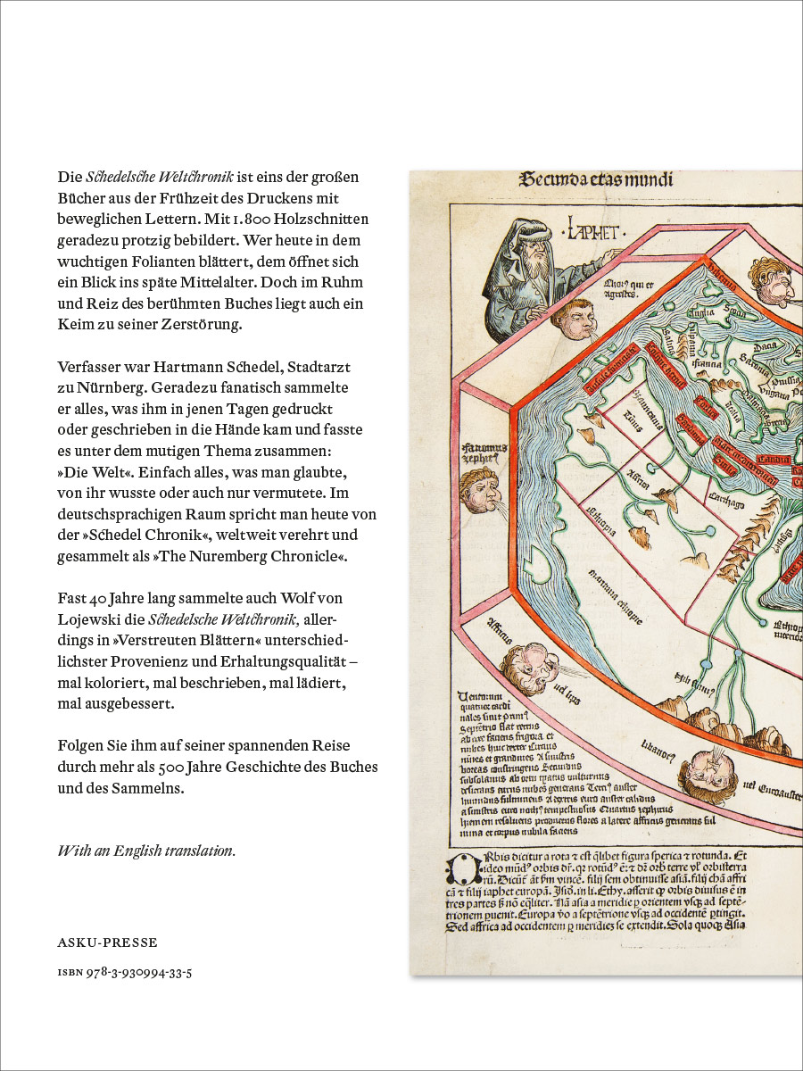 Fast 40 Jahre lang sammelte auch Wolf von Lojewski die Schedelsche Weltchronik, allerdings in »Verstreuten Blättern« unterschiedlichster Provenienz und Erhaltungsqualität – mal koloriert, mal beschrieben, mal lädiert, mal ausgebessert.