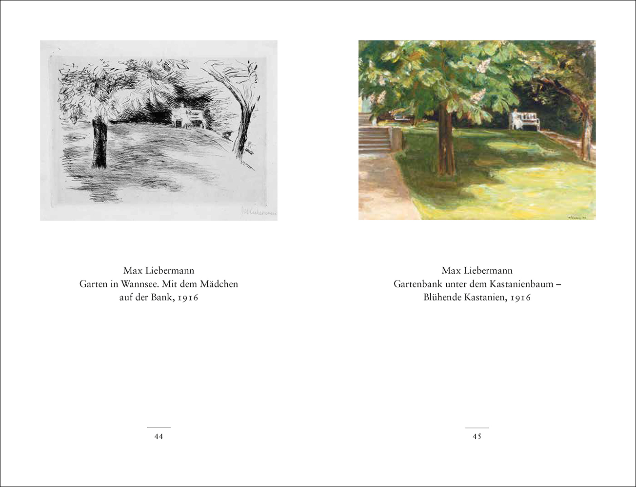 Die Auswahl, die Gloria Köpnick und Rainer Stamm hier getroffen haben, spiegelt Max Liebermanns Gartenkonzept aufs Schönste: Bilder vom Nutz- und Blumengarten, von den Terrassen, vom Rosen- und Heckengarten, von der Birkenallee, und immer wieder vom See.