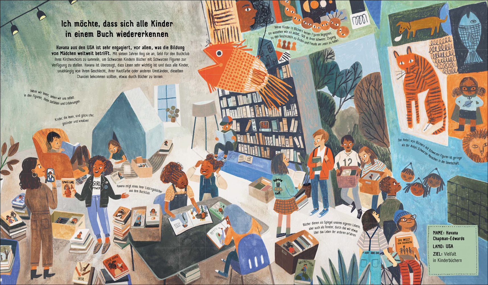 Mohamad aus Syrien war zwölf Jahre alt, als er eine Schule in einem Flüchtlingslager eröffnet hat. Die siebenjährige Havana aus den USA möchte, dass alle Kinder Spaß am Lesen haben, und verschenkt deshalb Kinderbücher mit vielfältigen Heldinnen und Helden. Kesz von den Philippinen lebte als kleiner Junge auf der Straße. Schon mit sieben Jahren hat er eine Organisation gegründet, um anderen Kindern in der gleichen Situation zu helfen.